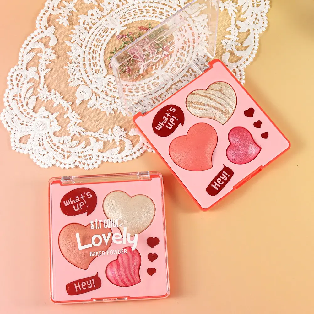Three-Color 4D Heart Blush Powder, Long-Lasting Makeup Highlighter, Natural Look, Perfect for Daily Use, Enhances Complexion
