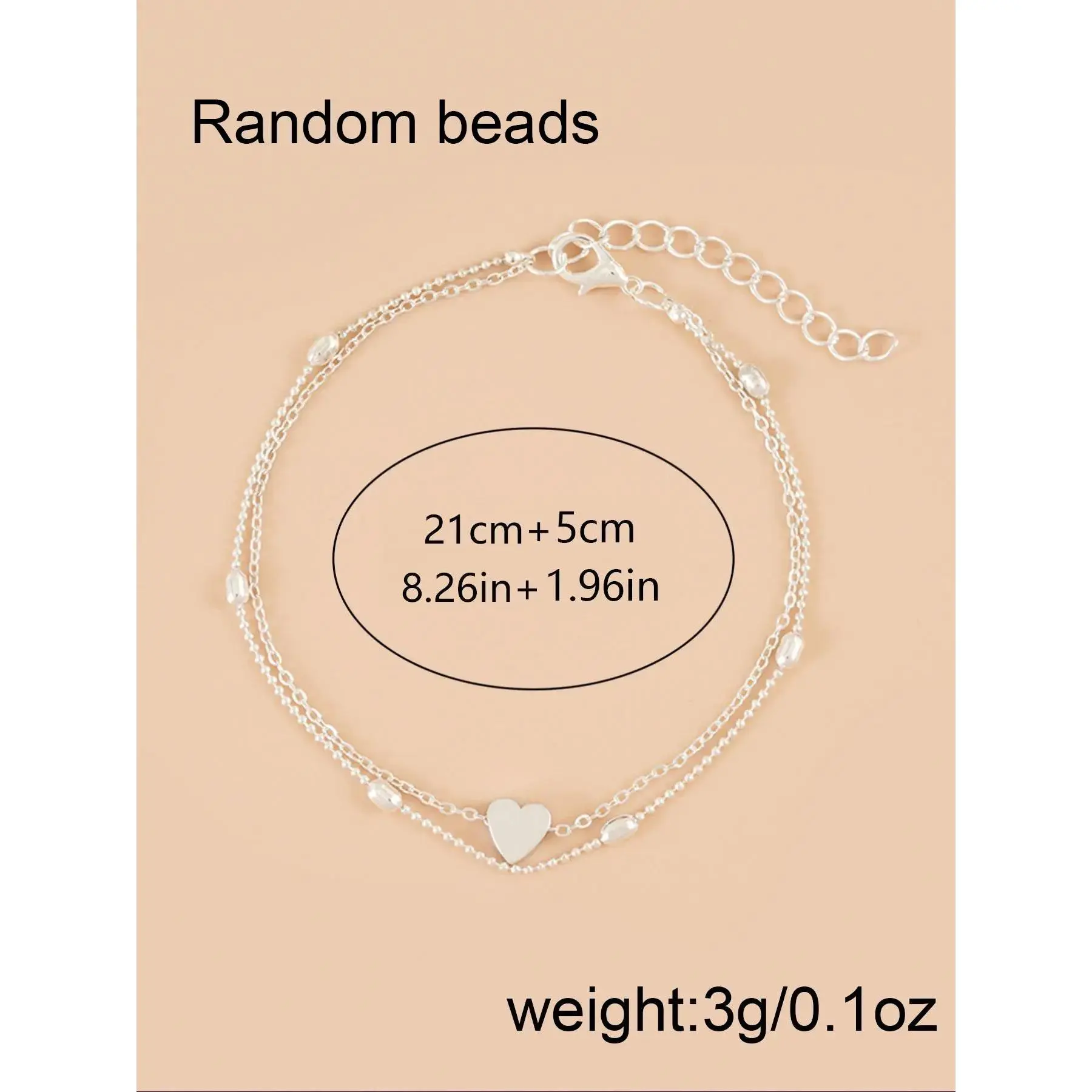 Women's Summer Beach Vacation Heart Design Layered Anklet, Fashionable Simple Star Beaded Ankle Bracelet, Multi-Layer Pearl Chain Jewelry, Trendy Jewellery Accessories