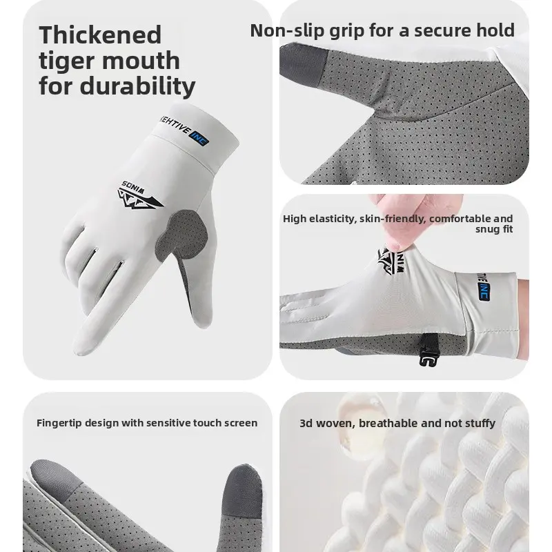 Summer sun protection gloves for men and women couple style outdoor cycling fishing anti slip breathable delivery driver gloves sports fitness. UVkeeps hands safe from sun. Silicone palm enhances grip for handlebars fishing rods gym equipment. Sweat wicking fabric comfortable for long hours work or exercise. Ideal for riders anglers runners delivery staff. Lightweight washable.