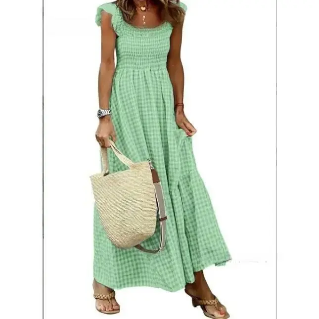 This dress is perfect for daily wear, vacations, and parties. It features a plaid print and sleeveless design, making it a versatile choice for various occasions. The spaghetti straps add a touch of sophistication, while the elastic waist ensures a comfortable fit. Ideal for those who love a blend of elegance and casual style.