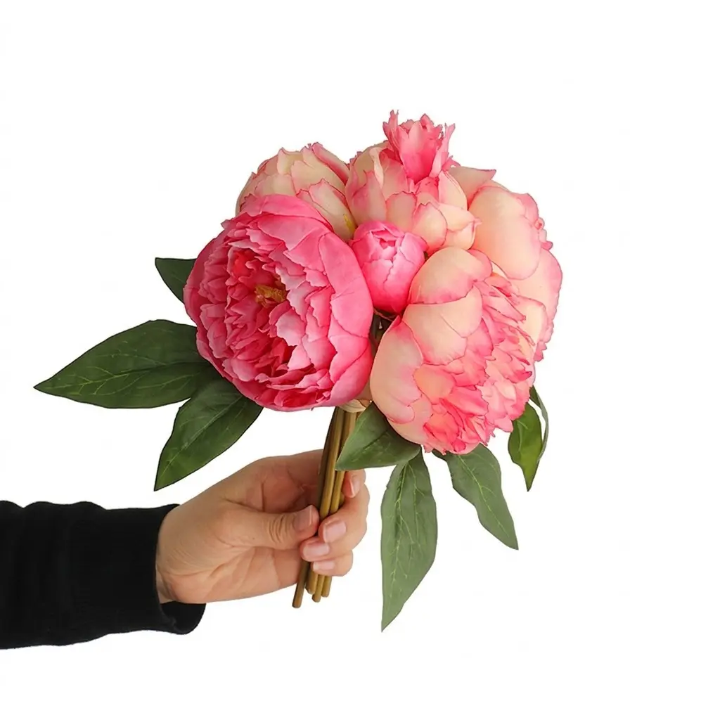 Size: Total length is about 11 inches.The bouquet diameter is around 6 inches.(Includes 3 large peonies at 7 inches, 3 flower buds at 2.5 inches, and 1 small bud at 1.5 inches).