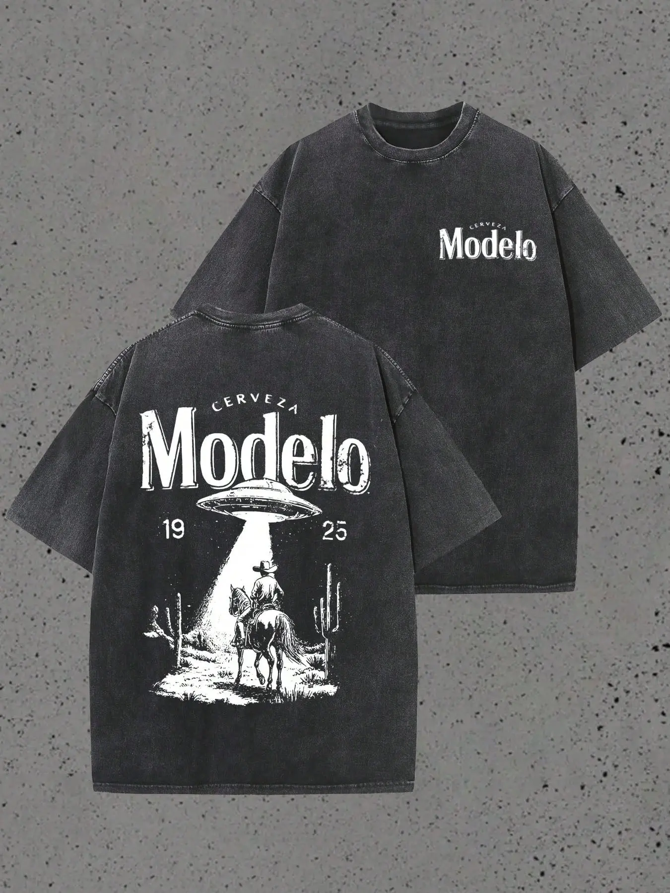 Vintage Washed Loose T-Shirt, Dual-Sided Ufo Jeans Print Short Sleeve, Y2K Retro Street Style, Unisex Casual Top, All Seasons