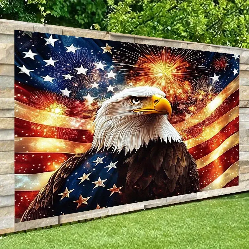 1pc a Patriotic Backdrop Featuring an Eagle And Fireworks for The 4Th of July - a Colorful Polyester Party Banner That Requires No Setup, Suitable for Indoor Or Outdoor Use During Celebrations, Bars