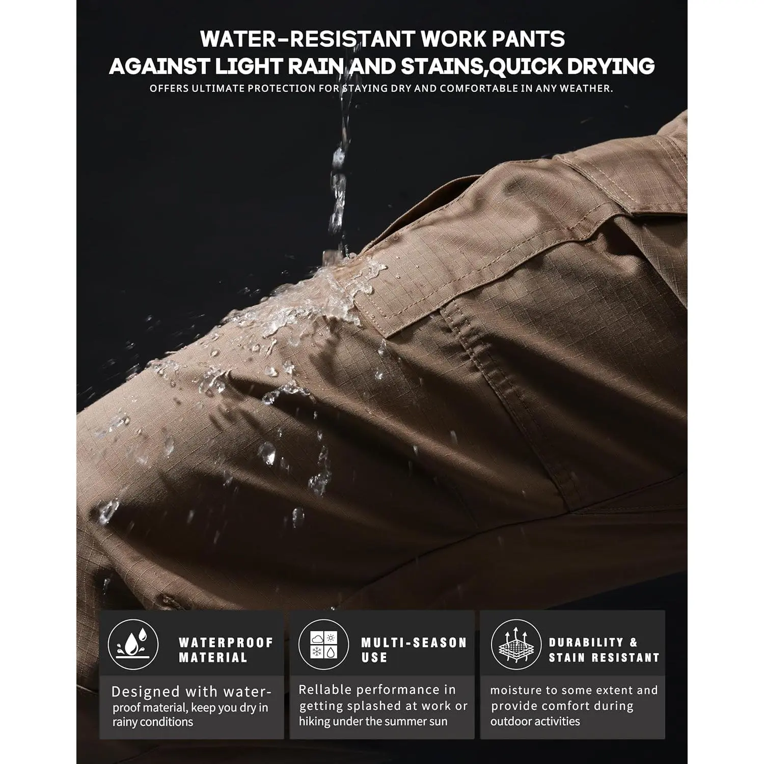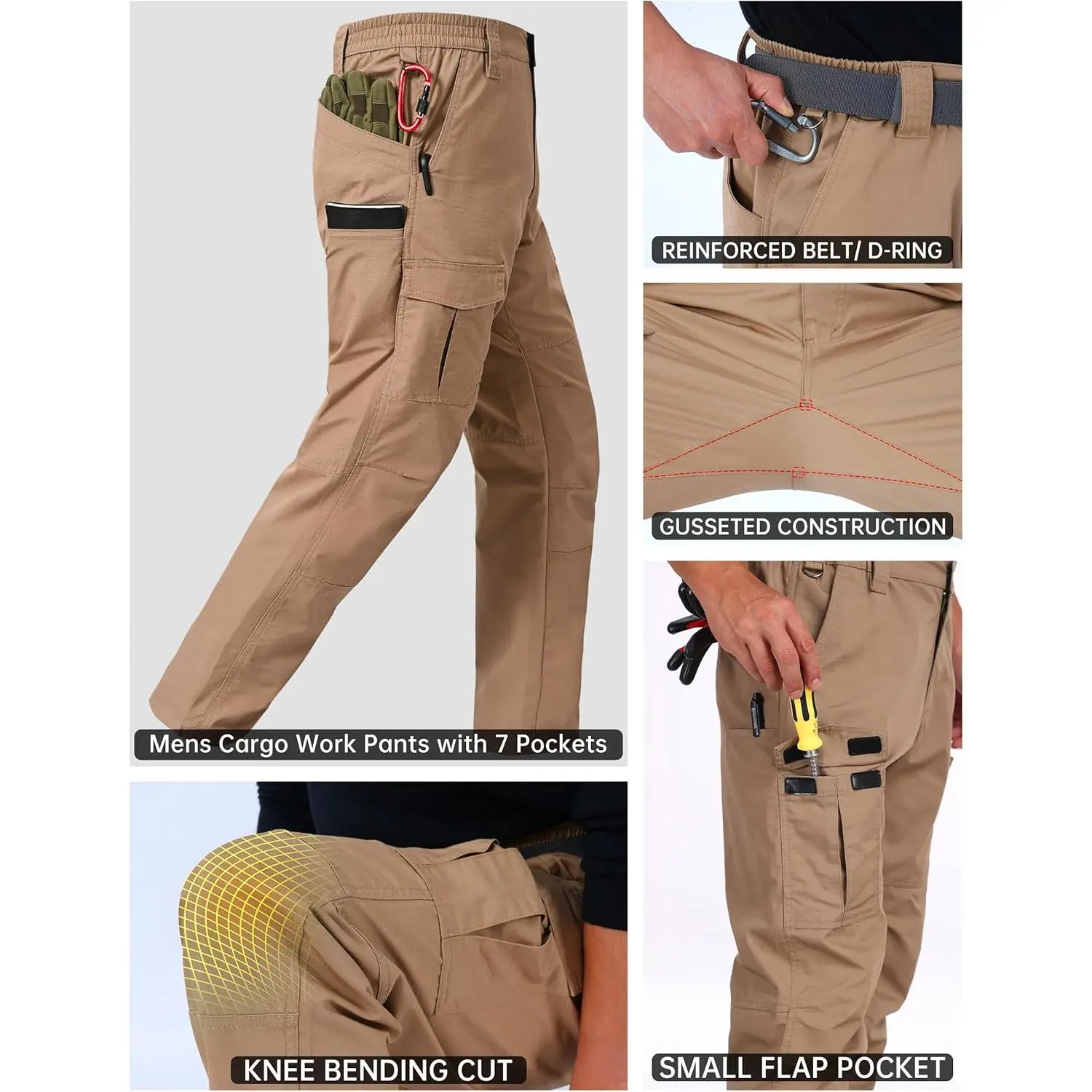 Mens Work Pants Ripstop Waterproof Cargo Pants for Men with 7 Pockets Tactical Hiking Pants