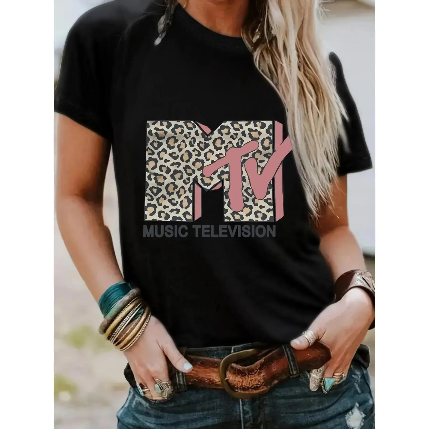 5. Women'S Leopard Print Round Neck Graphic Tee, Vintage Trendy Casual Streetwear Short Sleeve Fitted T-Shirt For Daily Wear, Ladies Summer Outfit