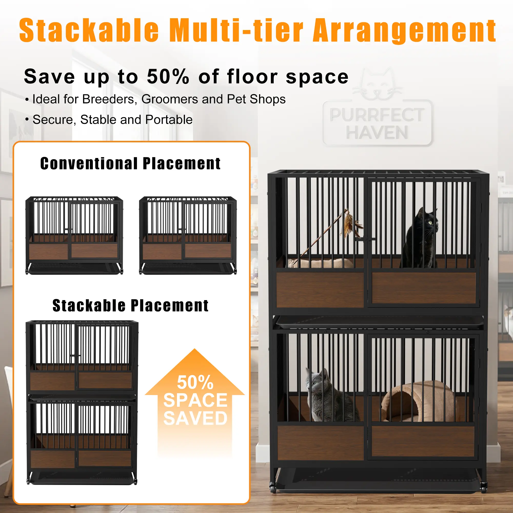 Stackable Design with Screw Locking for Stability : These stackable breeding pens are made for efficient vertical use in breeding rooms, catteries, and pet stores. Each stacked unit is secured with locking screws for a more stable connection, helping keep the structure steady and safe during daily use. Available in single, double-tier, and triple-tier options, this design saves floor space while creating a practical breeding setup