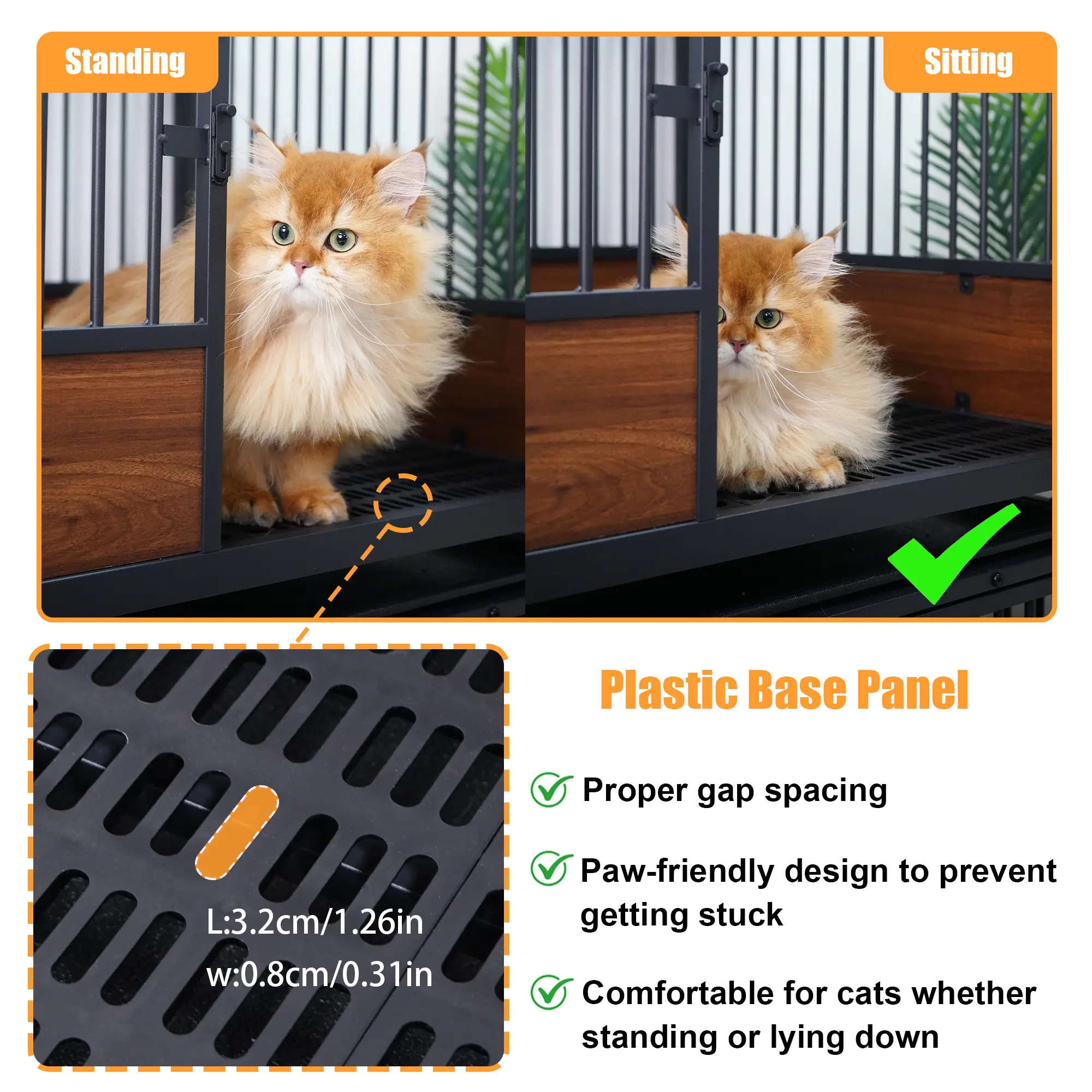 Raised Plastic Slatted Floor for Comfort and Easy Cleaning : The bottom plastic slatted floor is more comfortable than wire flooring and easier to rinse than wood panels. It helps protect paws from getting stuck, gives pets a more stable surface for standing or lying down, and allows litter and debris to fall through to the tray below for faster cleanup. This makes the pen practical for daily breeding use and a smart alternative to a traditional kitten birthing box