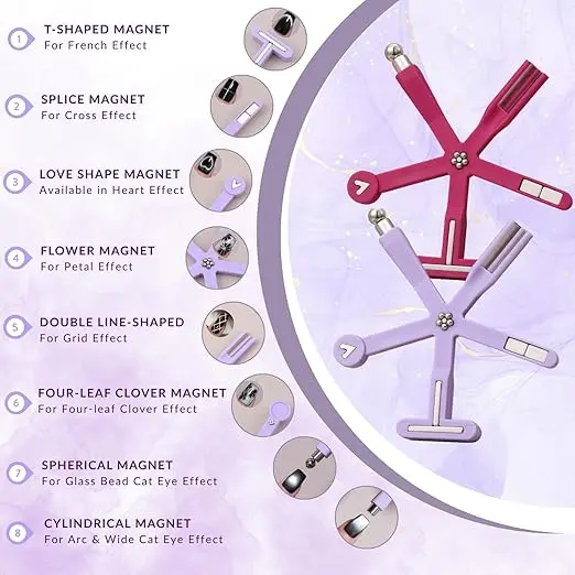 ·Quick-Change Cat Eye Tools for Any Occasion: Create vertical, slanted, velvet or starry looks easily. Go from office nudes to party neons in seconds. Use preset nail art magnets for consistent patterns-new looks every time.