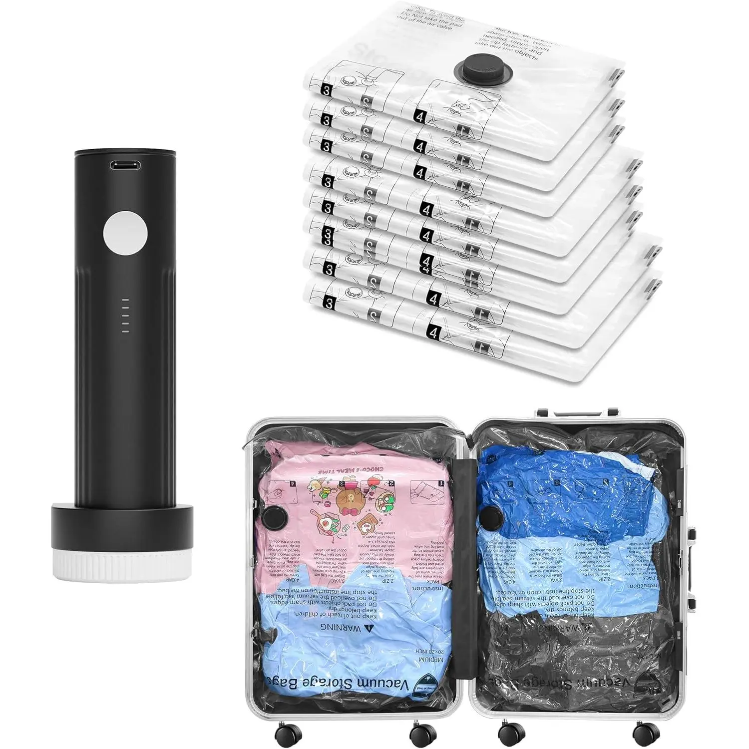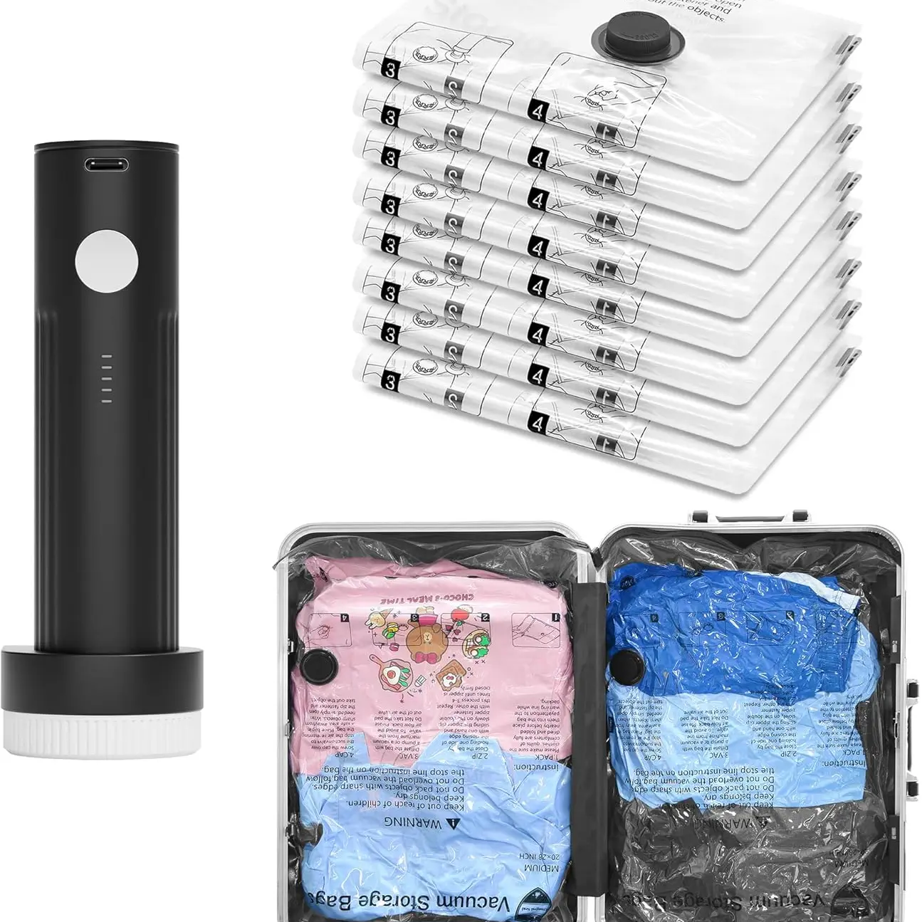 Vacuum Bags for Travel with Rechargeable Pump, 8 Combo (2L/3M/3S) Compression Packing Seal Bags for Luggage Suitcase, Space Saver for Clothing and Clothes Storage Travel