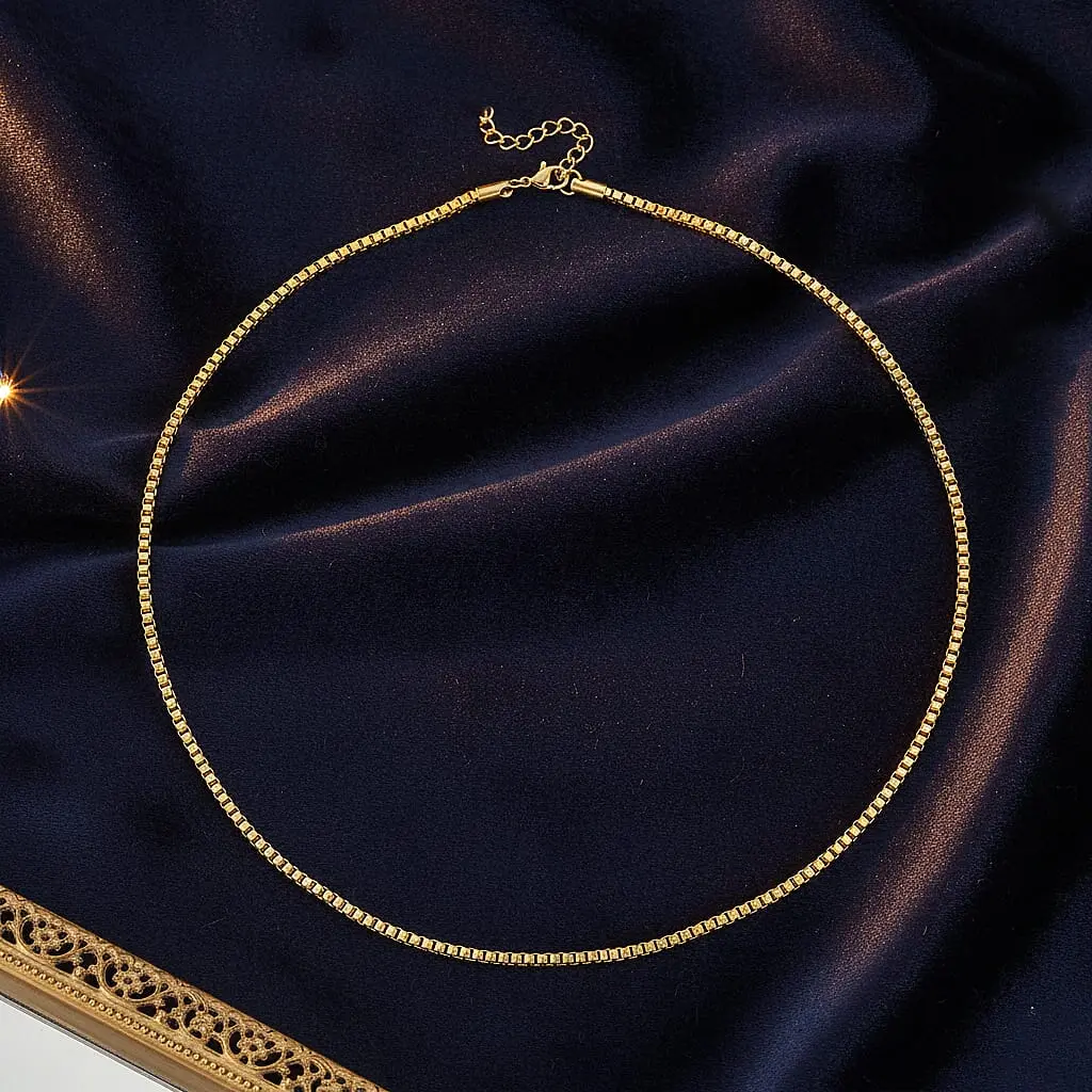 Refine your style with this classic box chain necklace in 316L stainless steel. This elegant fashion chain necklace adds a warm, polished accent to any outfit. Perfect for layering or wearing alone for timeless sophistication.Details | Elegant appeal with the box chain design | Hypoallergenic with 316L stainless steel | Luxurious glow from the ION plated Yellow Gold | Versatile styling with an adjustable length | Easy to wear with a lobster claw clasp | Ideal for both daily and occasional wear