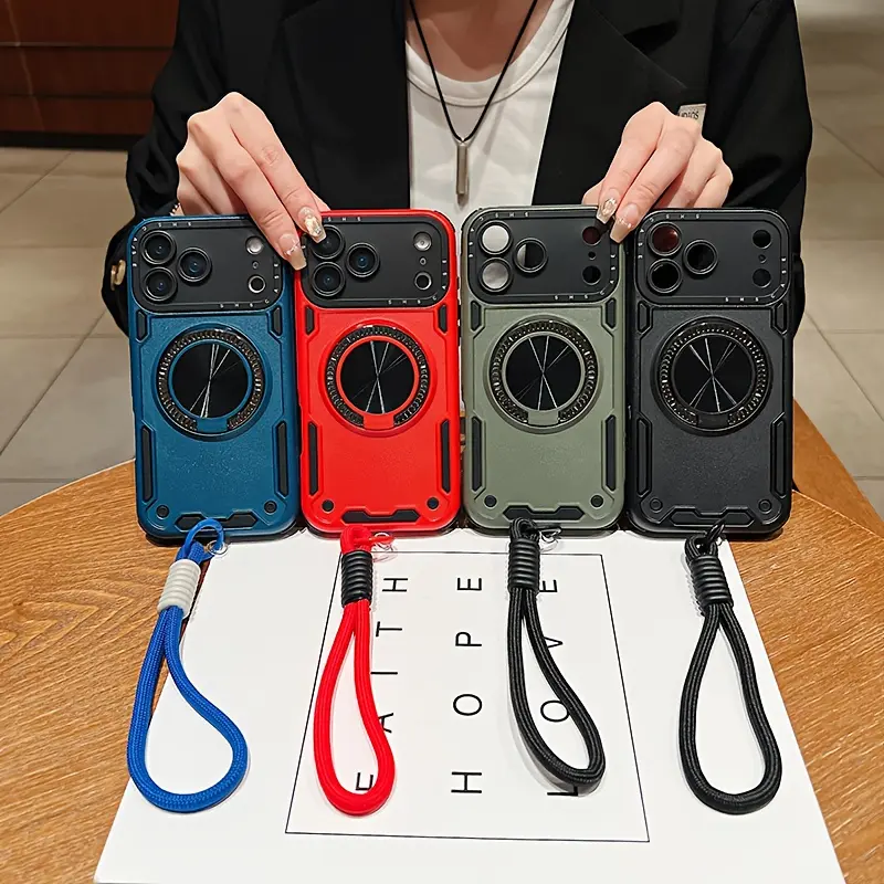 Phone Case: Three-in-one Shockproof and Anti-slip Stand Phone Case with Lanyard, Suitable for iPhone 15/15 Pro Max/16/16 Pro/16 Pro Max/16 Plus/17/17 Pro/17 Air/17 Pro Max. Detachable with a Lanyard for Hand Carrying, Rotatable Stand