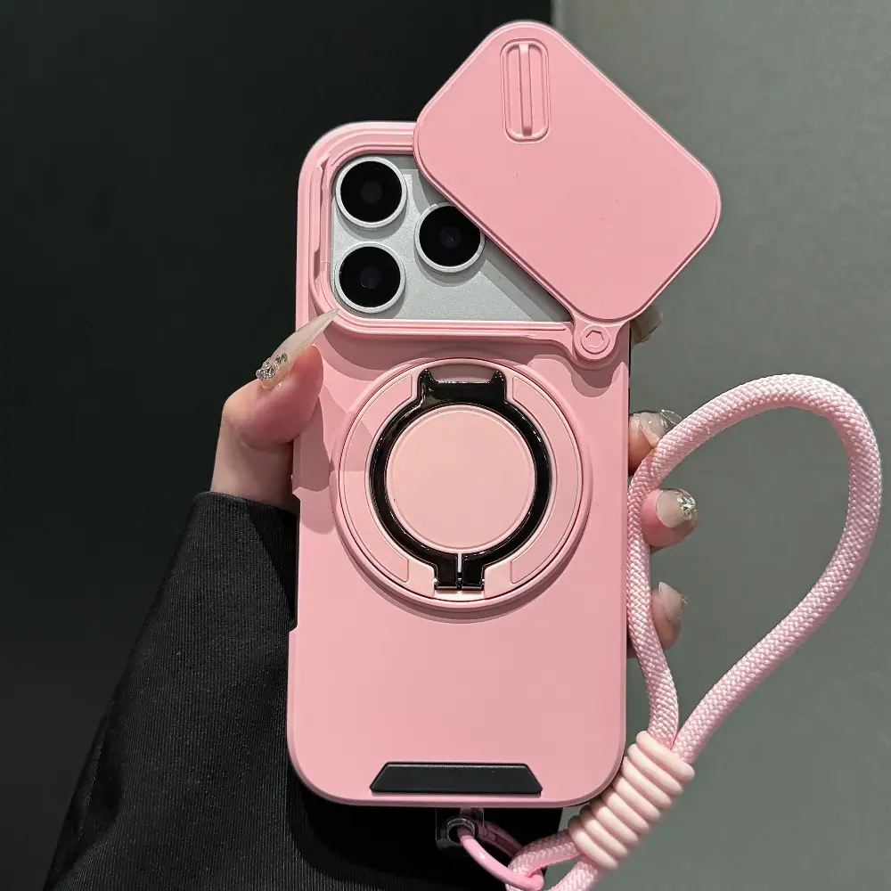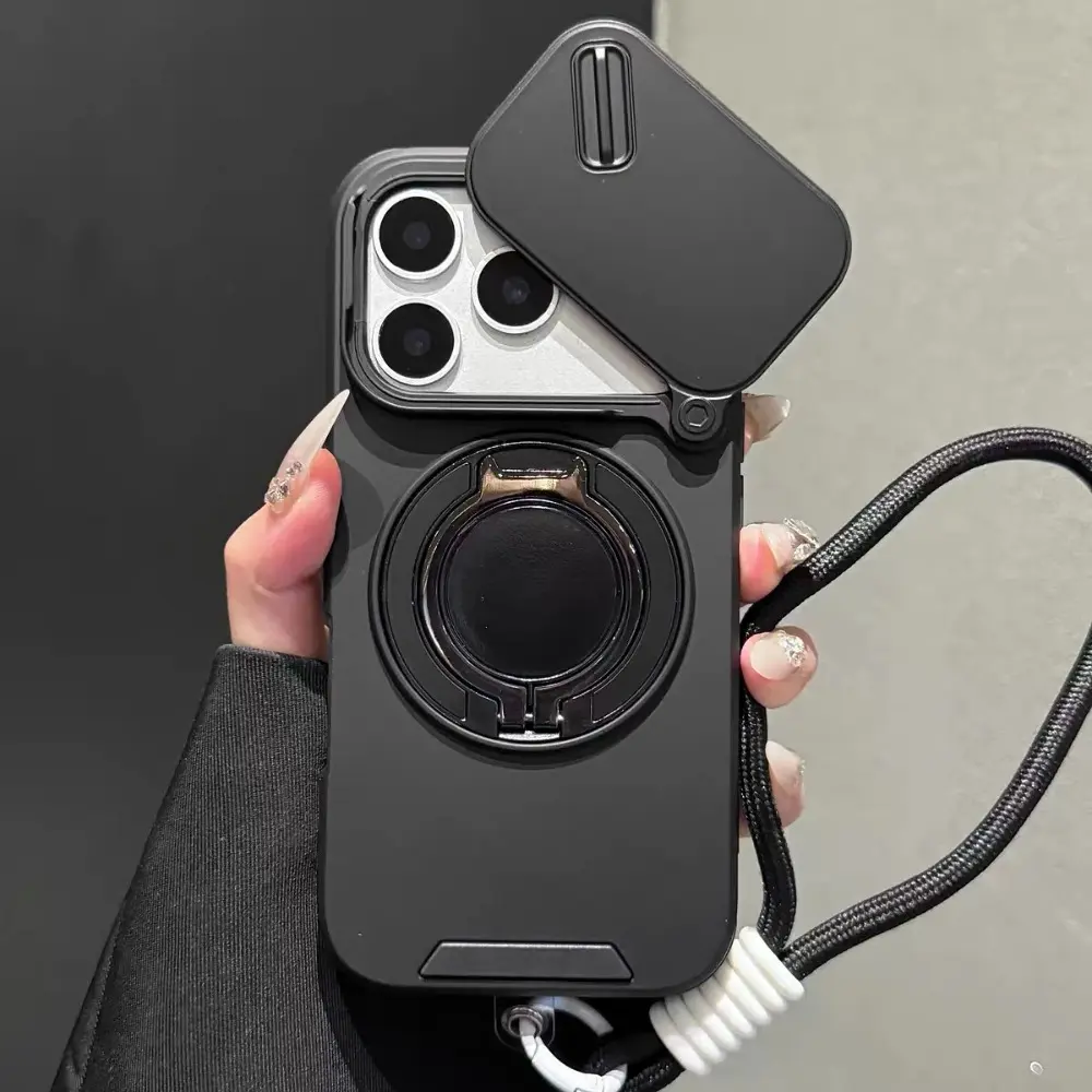 Rotating Lens Protection Case: Phone Case - Combines Lens Protection, Stand, and Magnetic Charging with a Lanyard. Suitable for iPhone Air 16/15/14 Plus/13/17 Pro Max. 360 ° Stand, Heavy-duty Drop-proof Protective Case