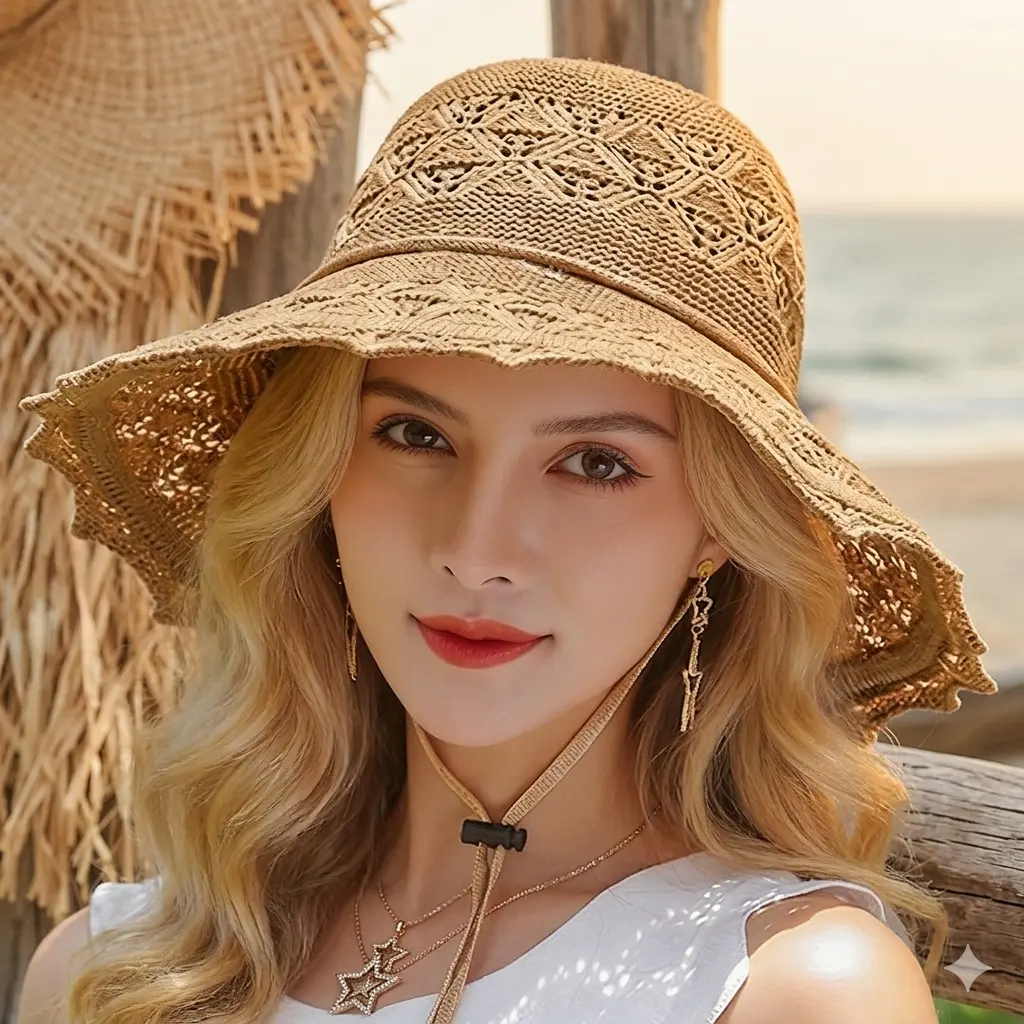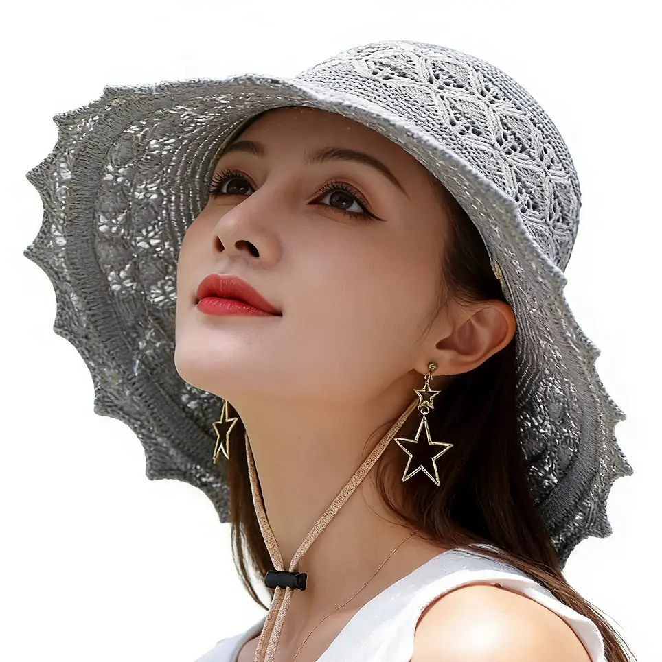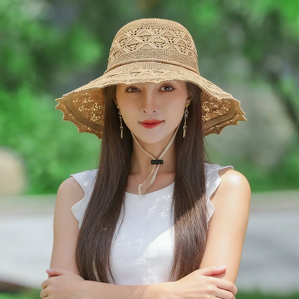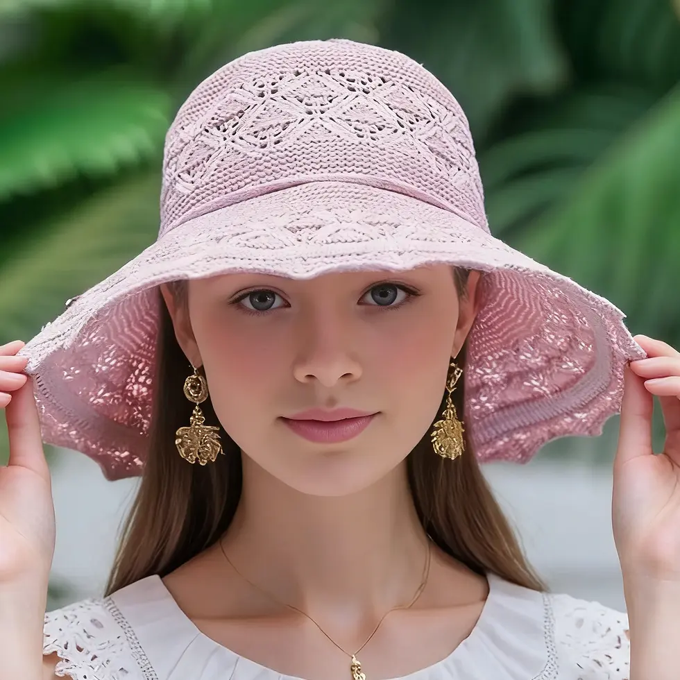 Features: Foldable design, Wide brim for UV protection, Romantic floral detail.
