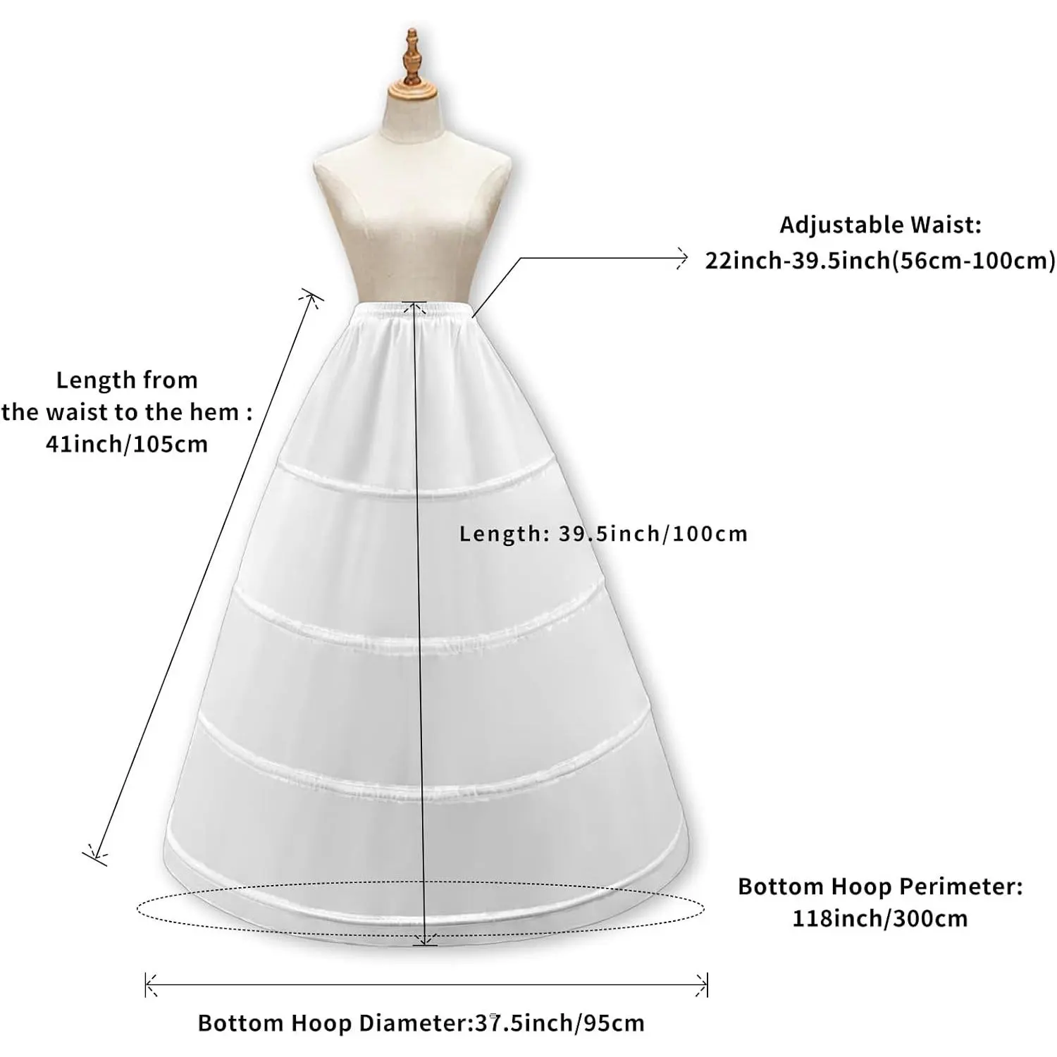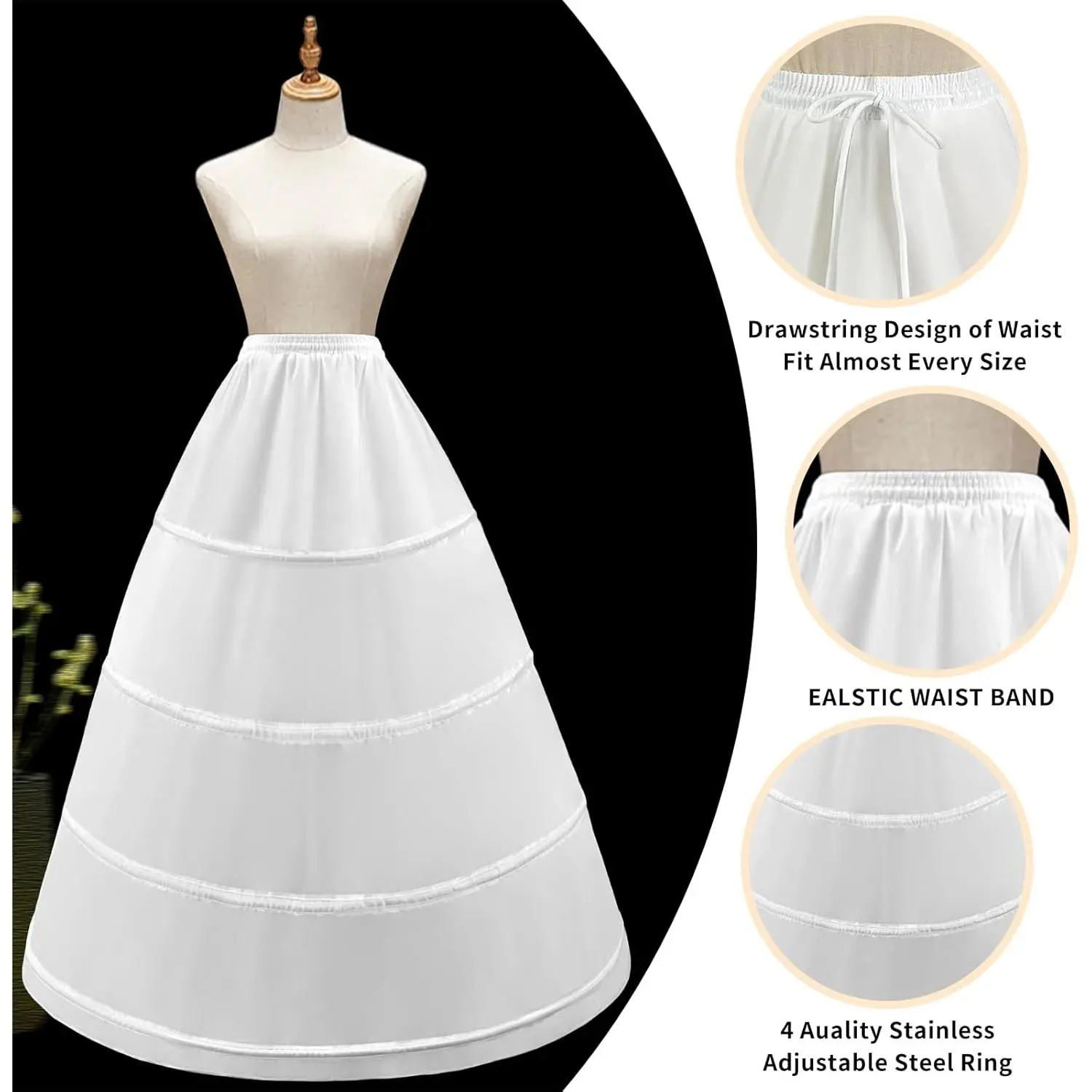 Women's 4 Hoop Skirt Petticoat A Line Crinoline Floor Length Underskirt for Wedding Dress Ball Gown Prom Quinceanera Slips