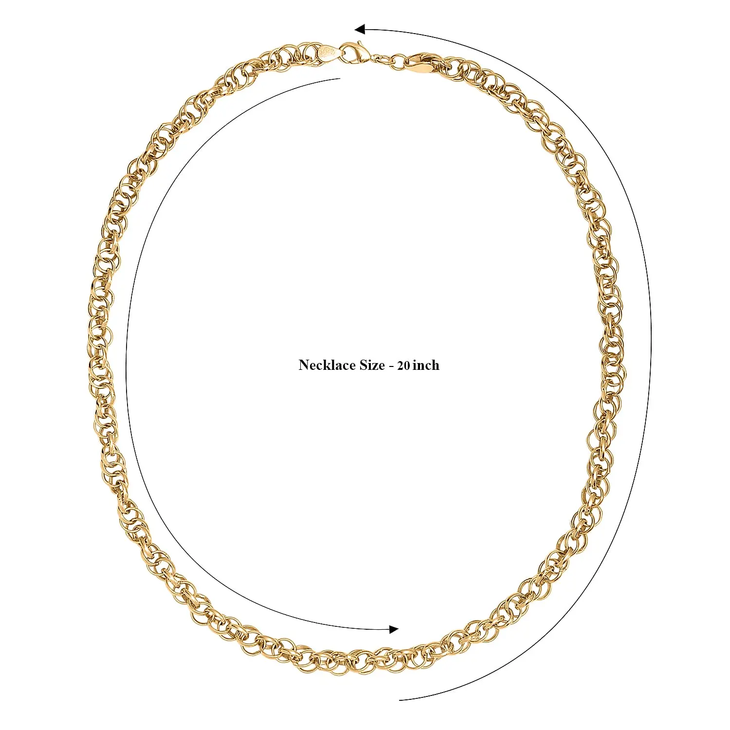 Interlocking Round Link Necklace in 18K Yellow Gold Plated Bronze 20 Inches