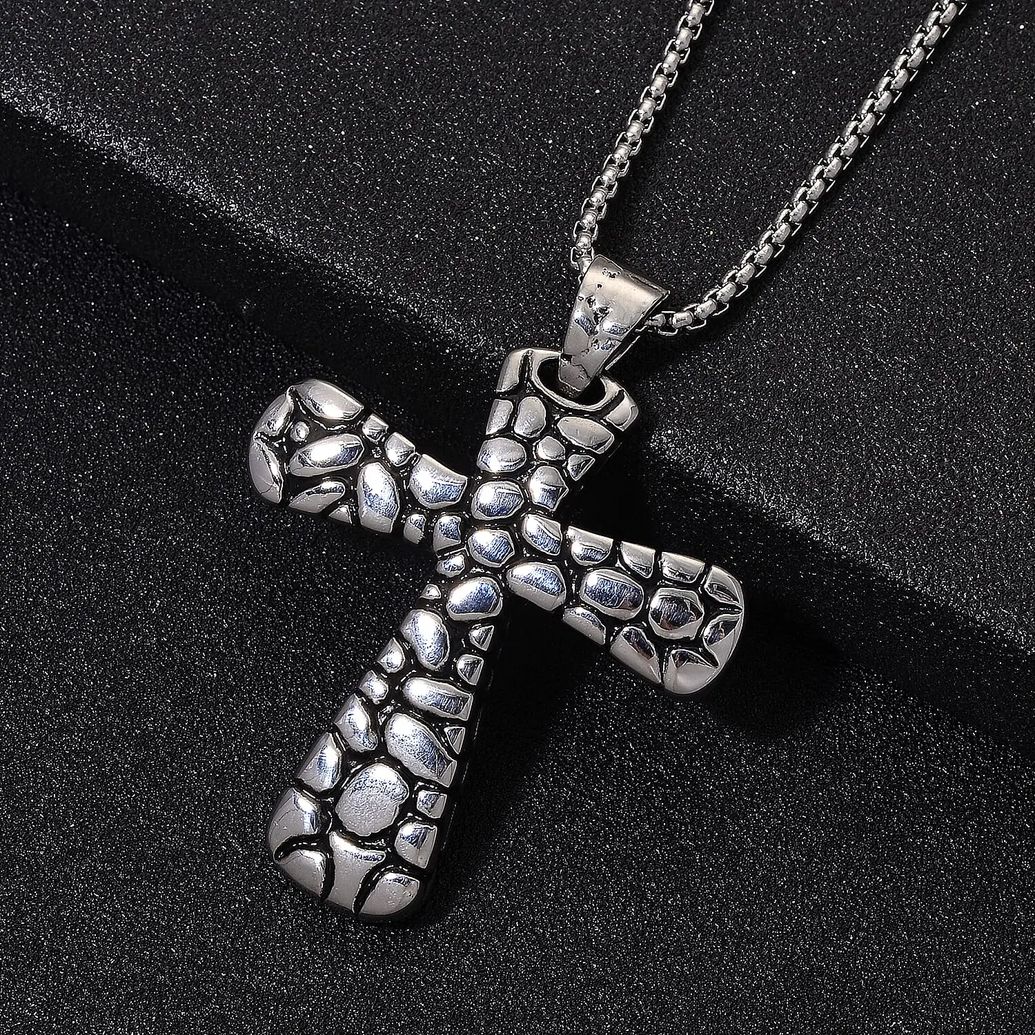 5. Pebble Surface Cross Pendant Necklace in Stainless Steel 23.5 Inches