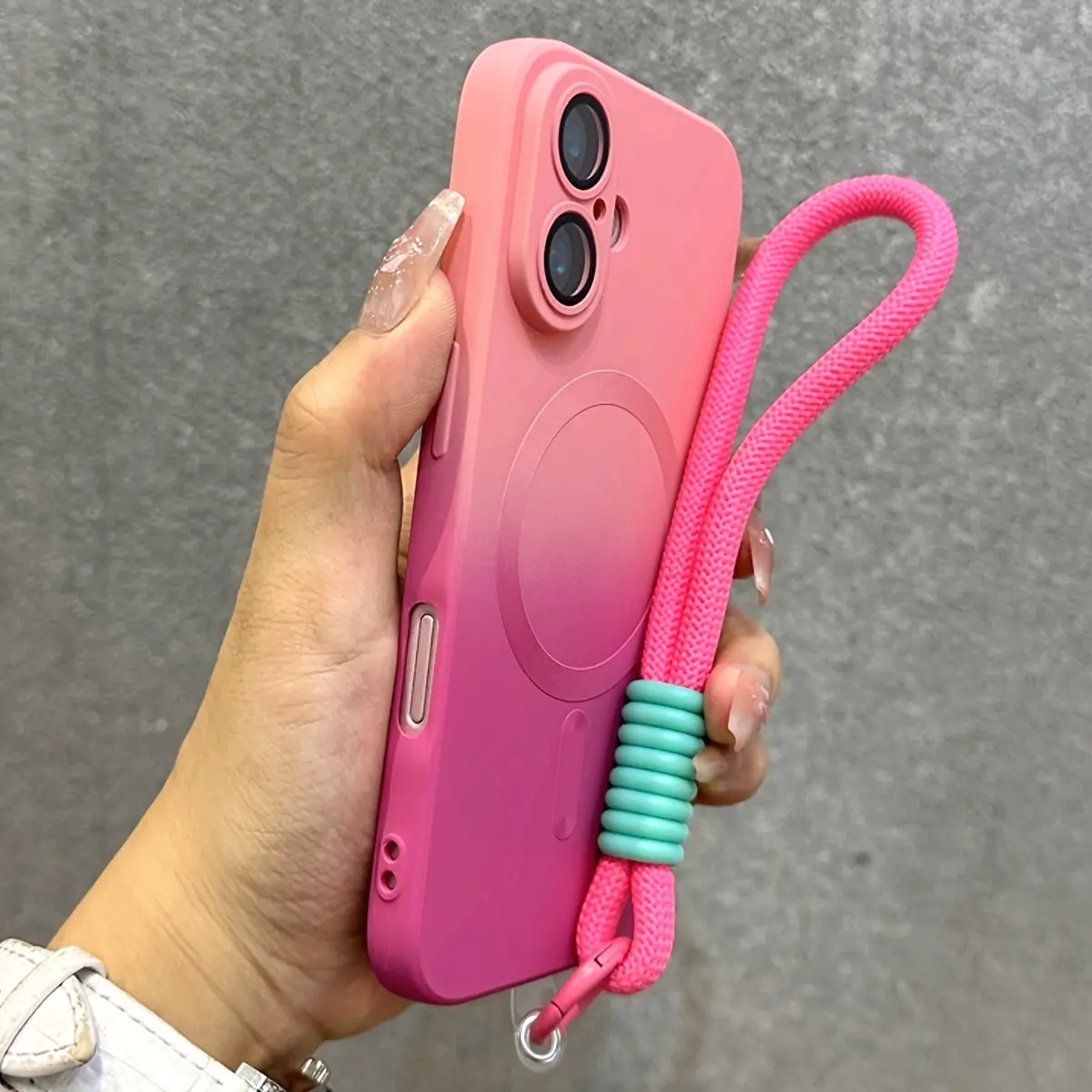 Phone case: Luxury Gradient Pattern Magnetic Wireless Charge Wristaband Strap Phone Case for iPhone 11 12 13 14 15 16 Pro Max Plus Soft Cover iphone 12