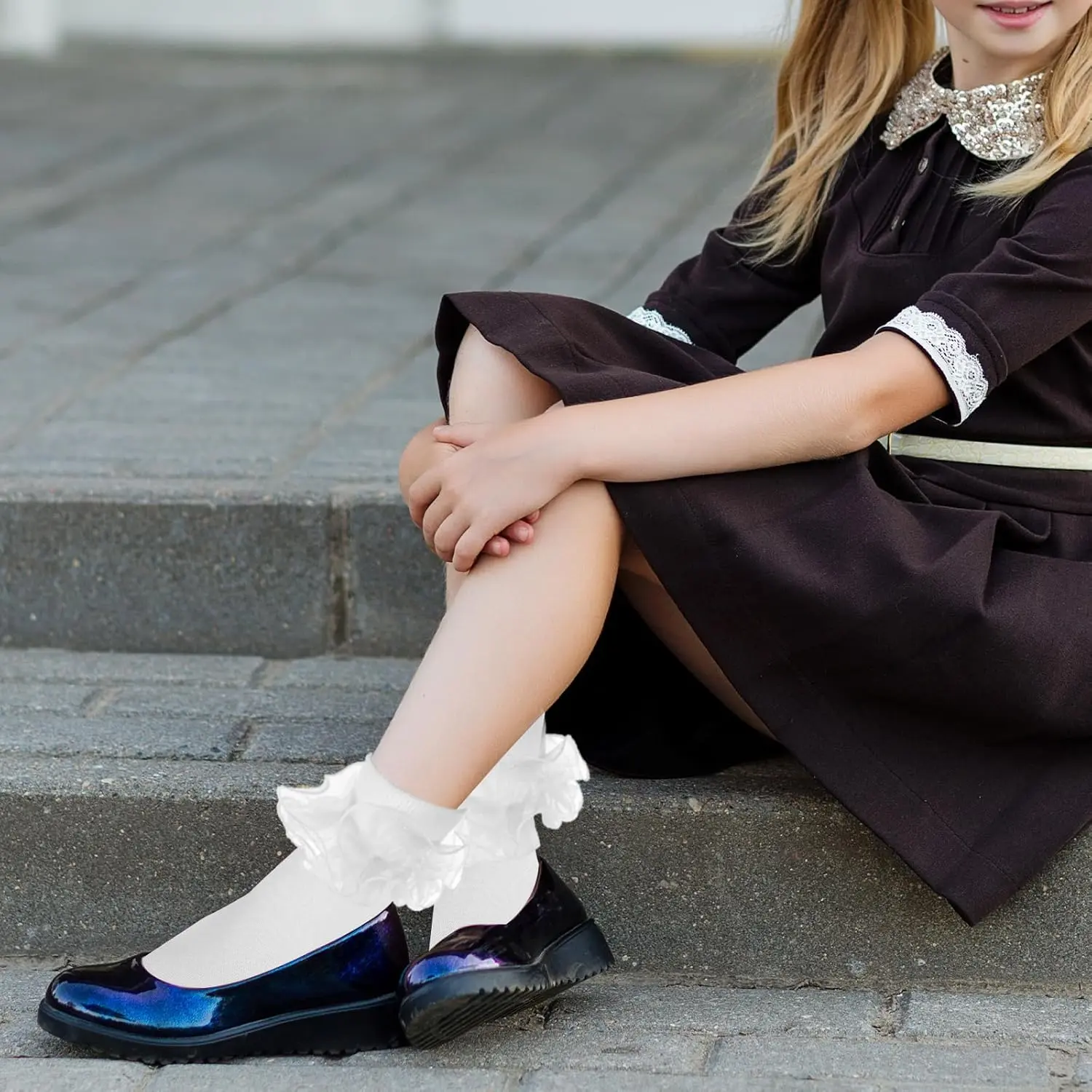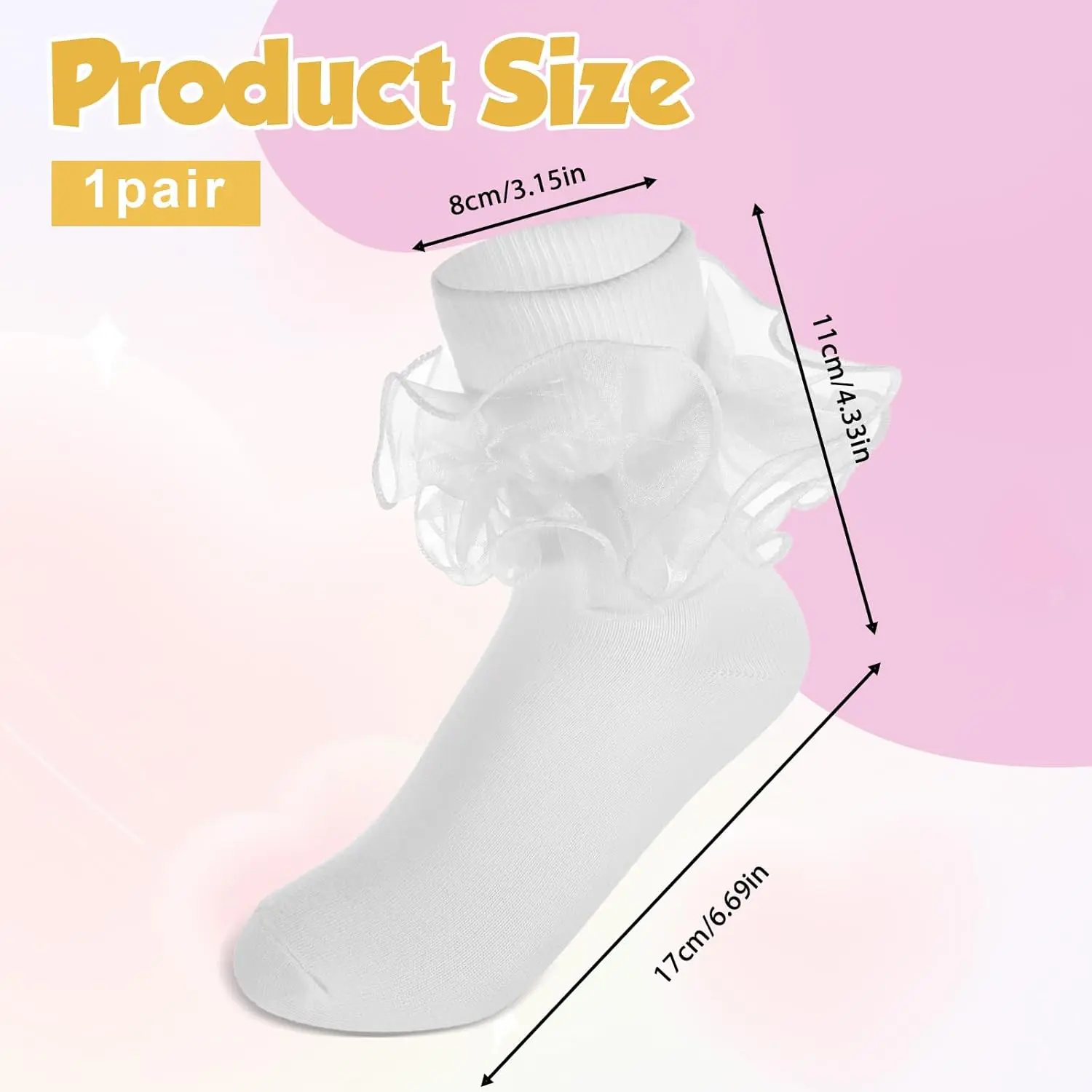 White Ruffle Socks for Women Girls – Double Layer Lace Turn Cuff Frilly Socks, Comfortable Cotton Ruffle Ankle Socks, Cute Lolita Vintage Crew Socks for Ages 10-12 & Adult – 1-3 Pairs