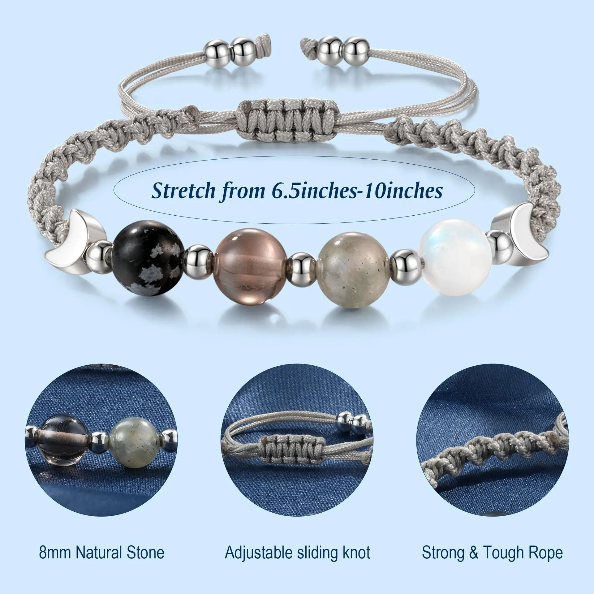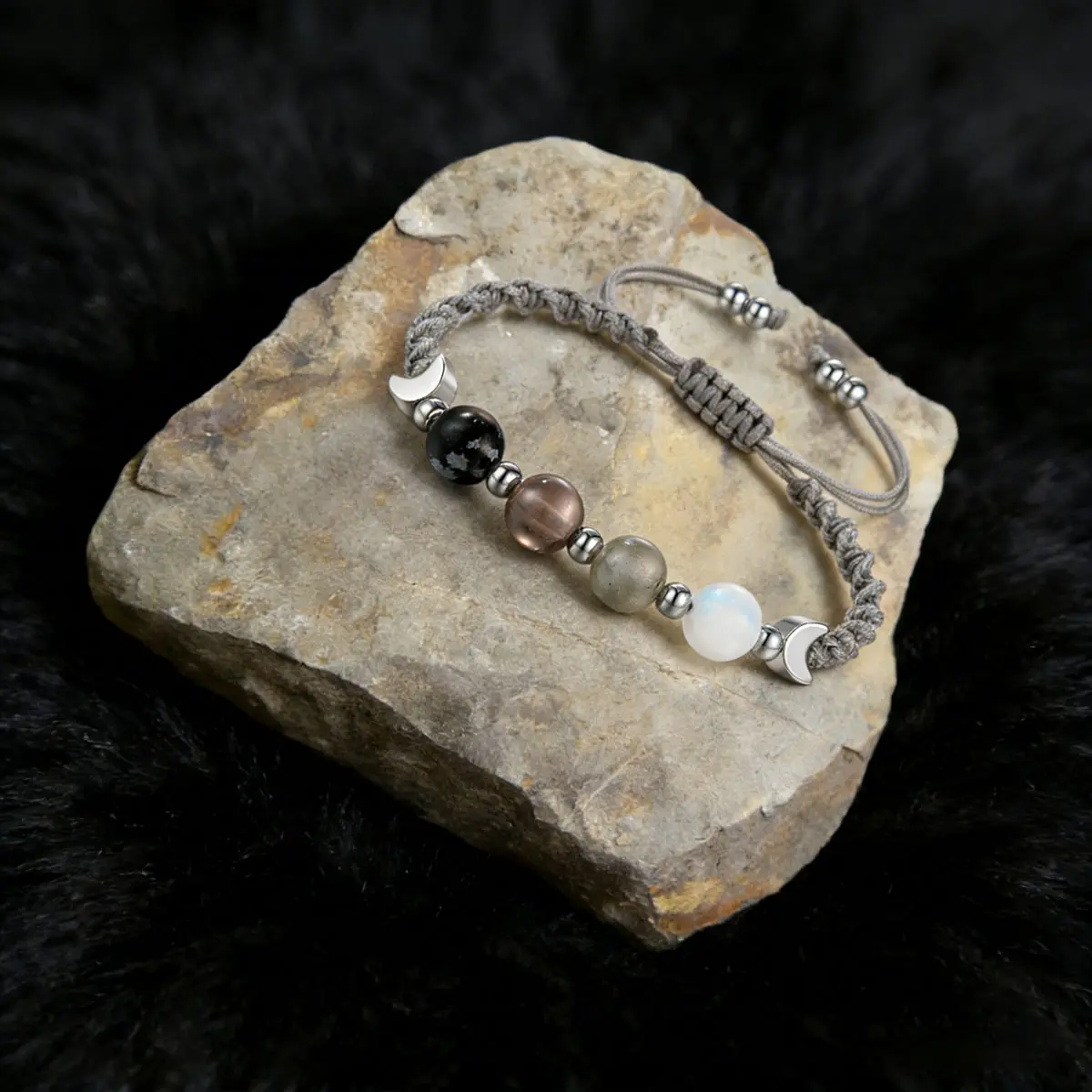 Featuring four moonstones in a dark-to-light gradient, mirroring the lunar cycle itself. These crystals are known to enhance intuition, spark creativity, and help you flow with life's natural rhythm. Perfect for anyone seeking a little more inspiration.