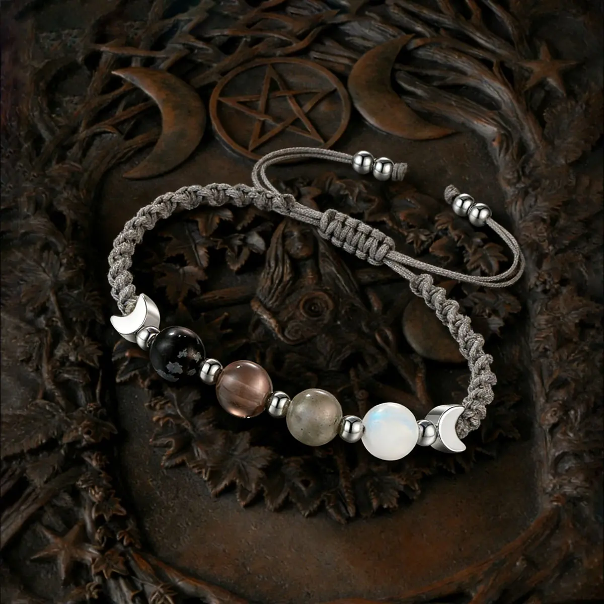 Adorned with two delicate silver moon-shaped charms that add a touch of celestial mystery and romance. They complement the moonstone energy beautifully — subtle, magical, and undeniably witchy.