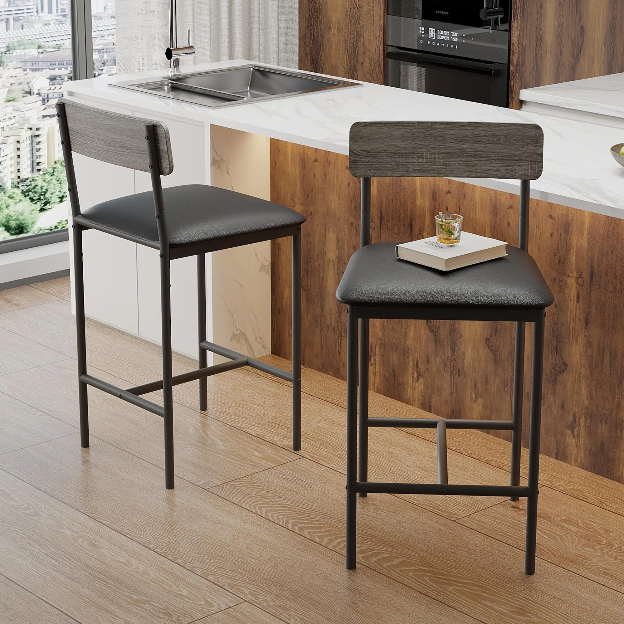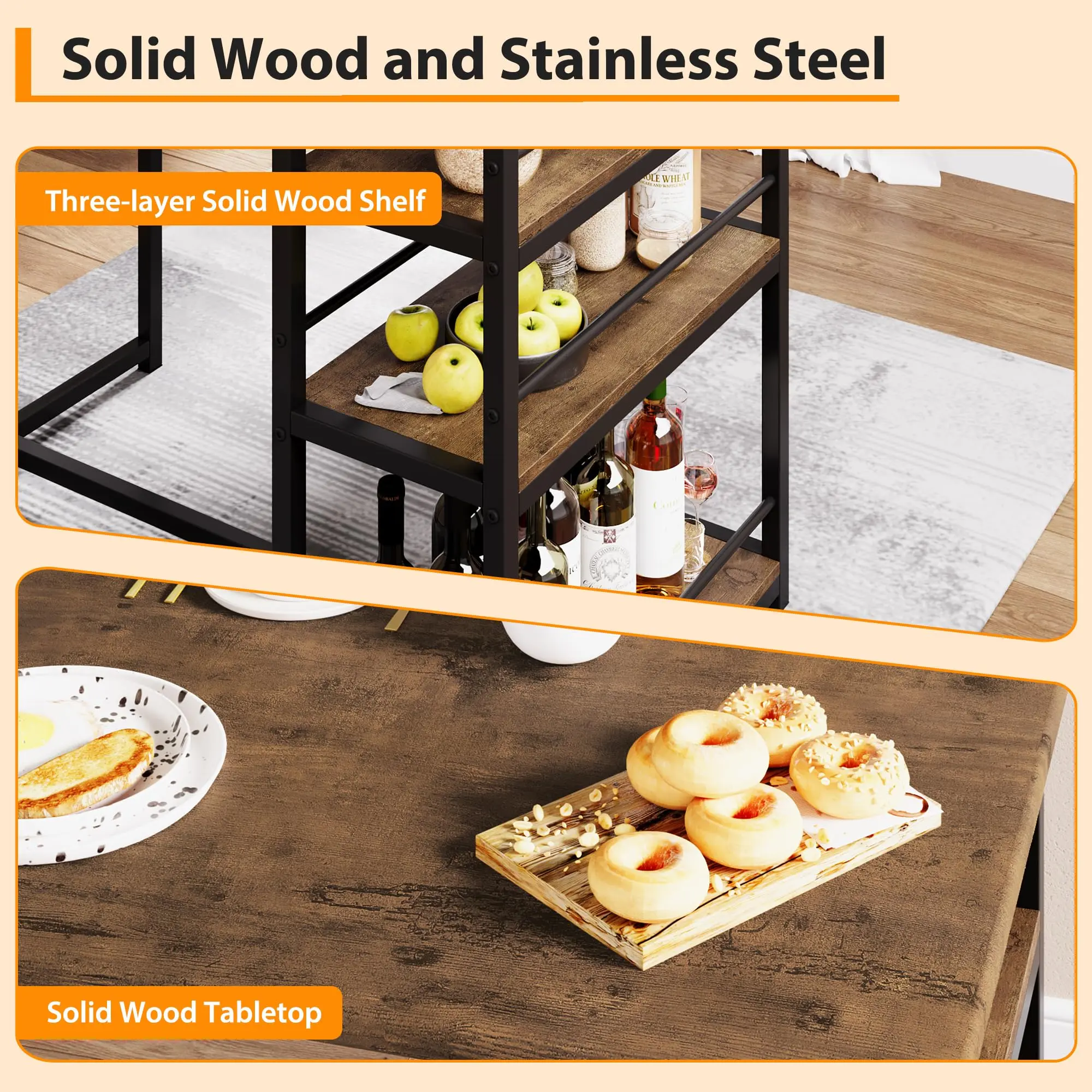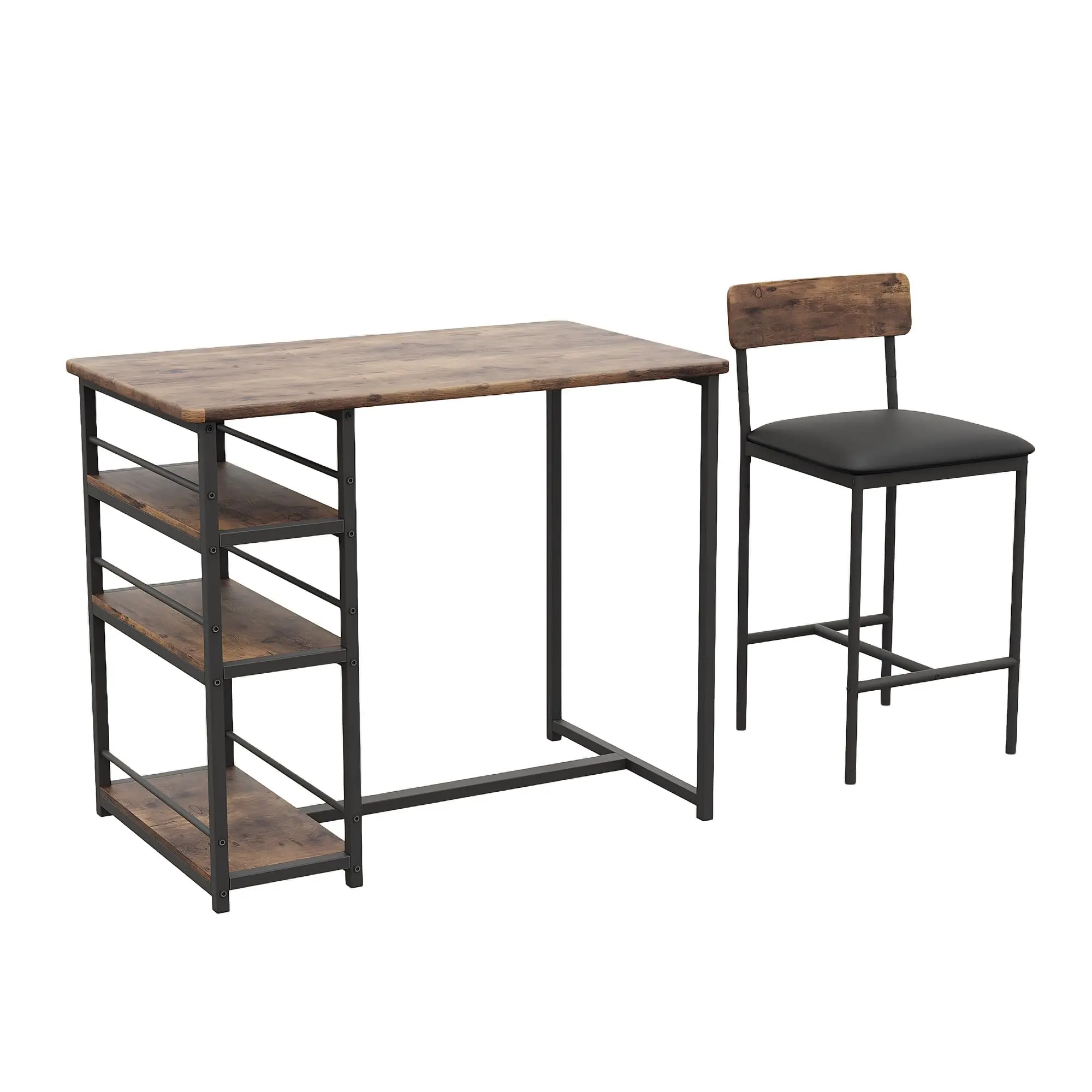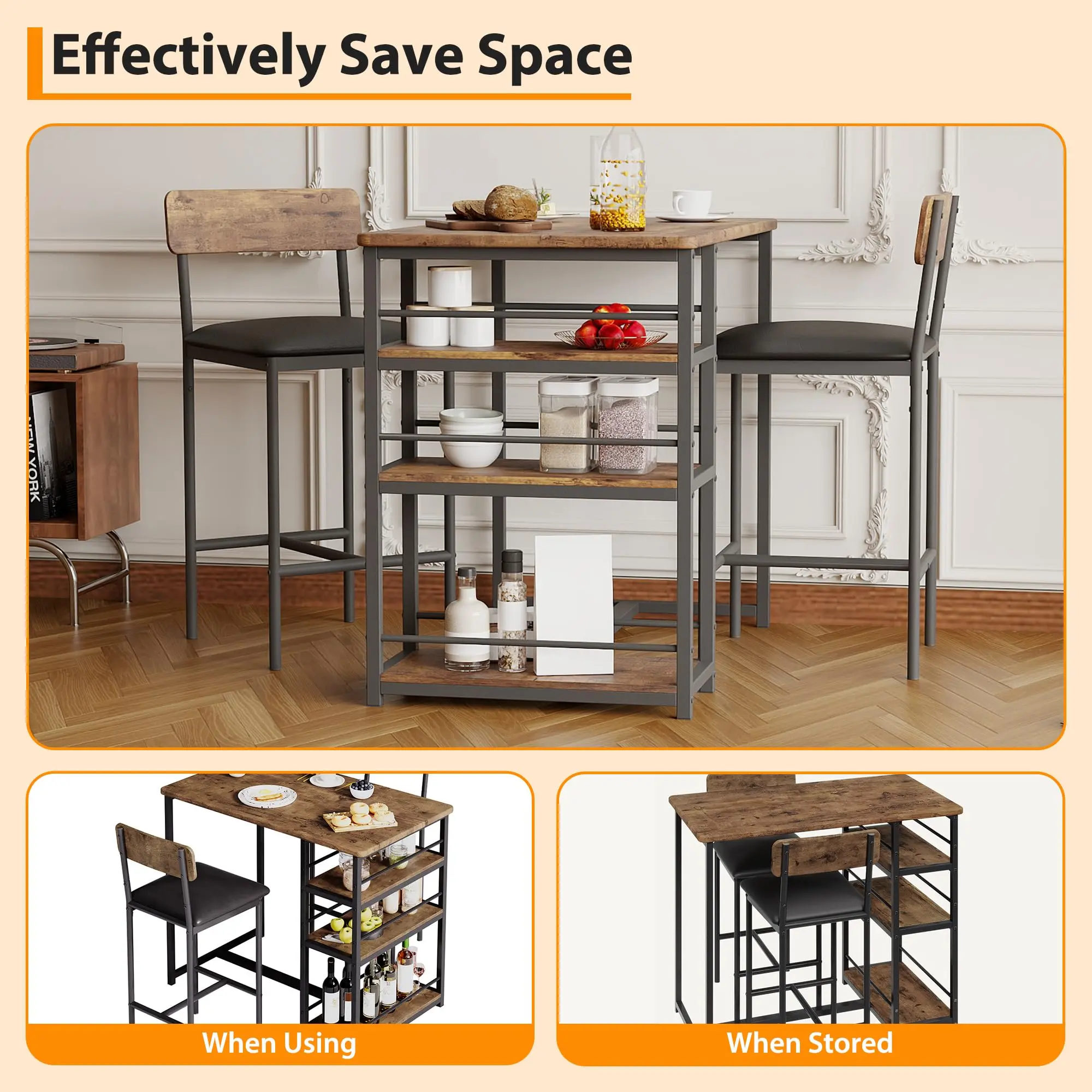 Garvee and Garvee Space-Saving Bar Table Sets for 2 with Upholstered Chairs, Multiple Storage Shelves, Comfortable Seating, Ideal for Kitchen, Apartment, Dining, and Living Areas