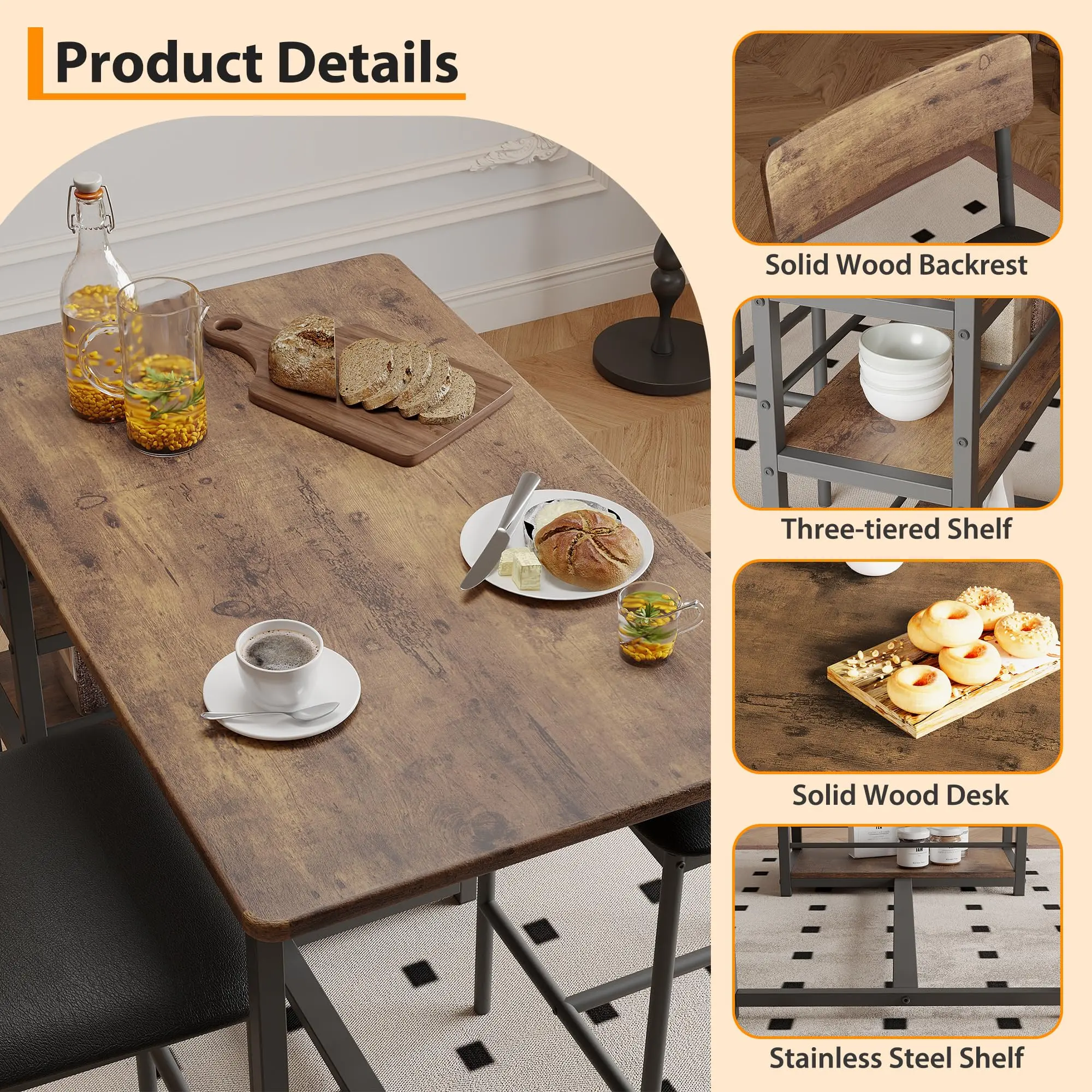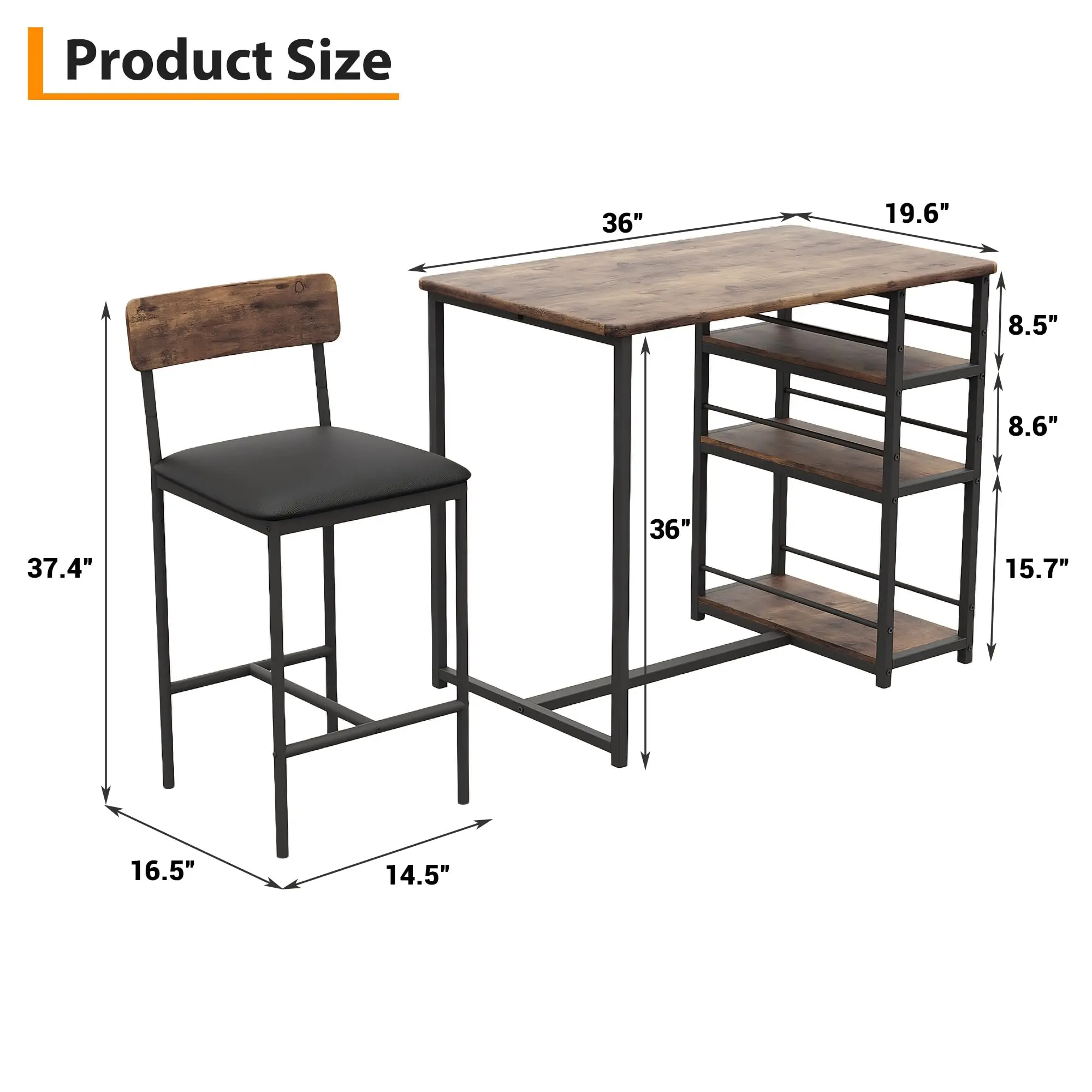 Garvee Dining Table Set for 2, Kitchen Table and Chairs for 2 with Upholstered Chairs, Counter Height Bar Kitchen Table Set with 3 Storage Shelves