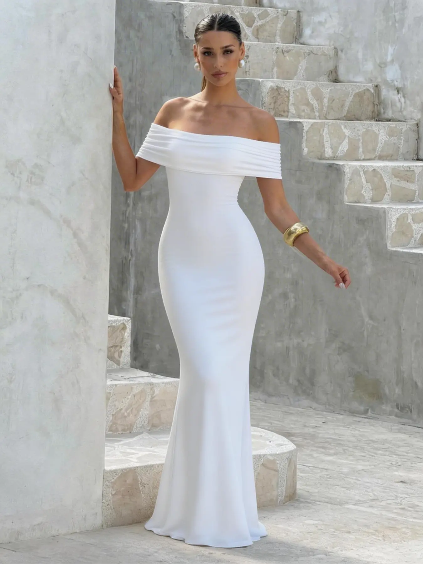 2026 Summer New Women's Elegant One-Shoulder Backless Long Slim Fit Dress, Casual Plain Pattern, Fashionable Ladies' Clothing