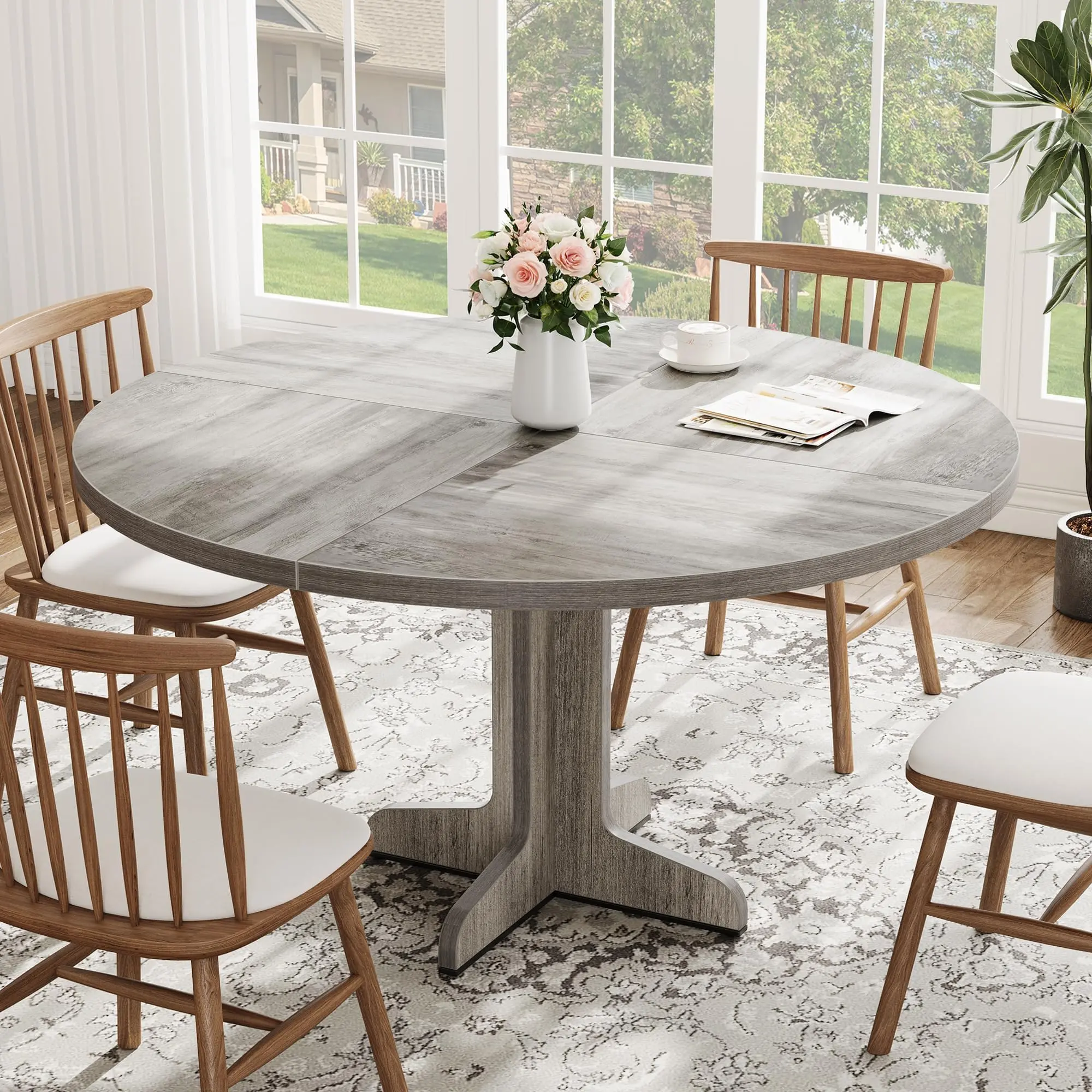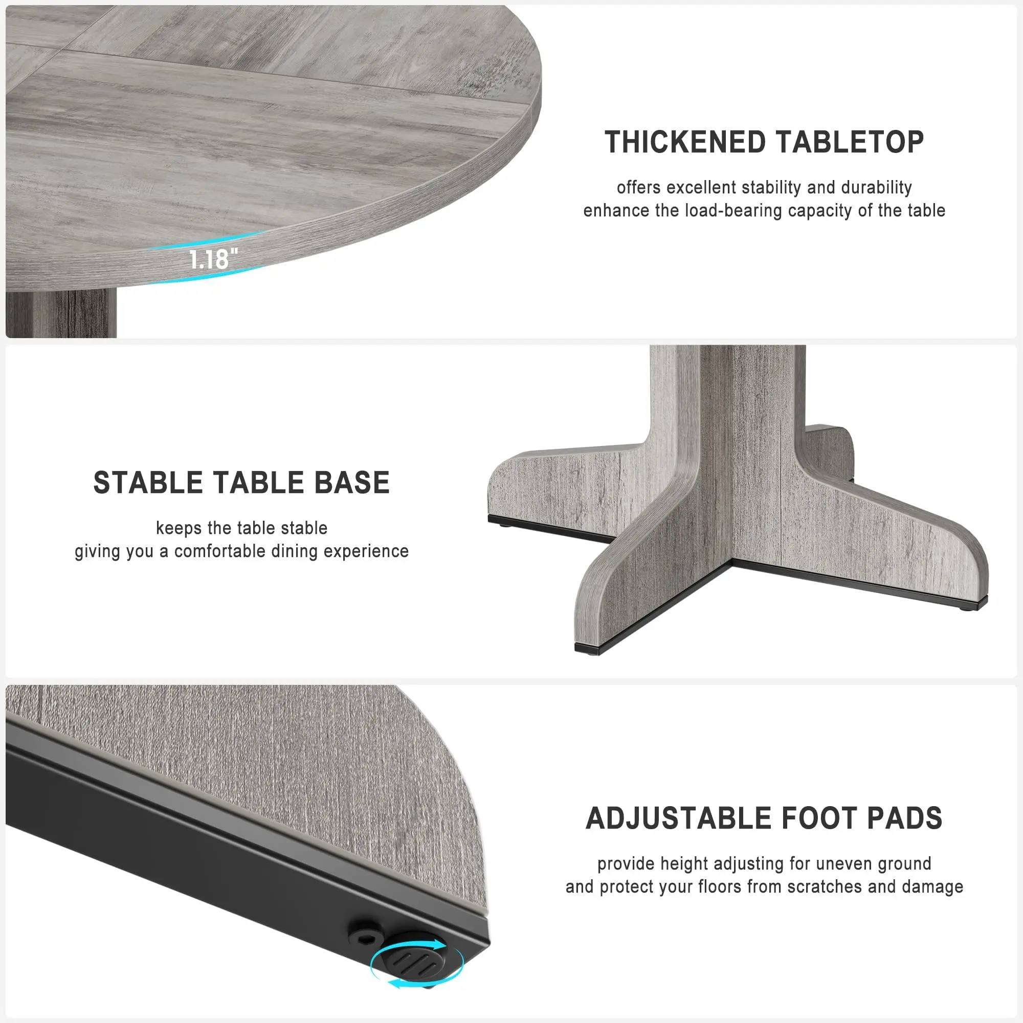 · Versatile and Adaptable Design: The sleek grey finish and round shape make this round dining table a versatile addition to any home decor. Its elegant design seamlessly blends with various interior styles, adding a sophisticated touch to both modern and traditional dining or living rooms.