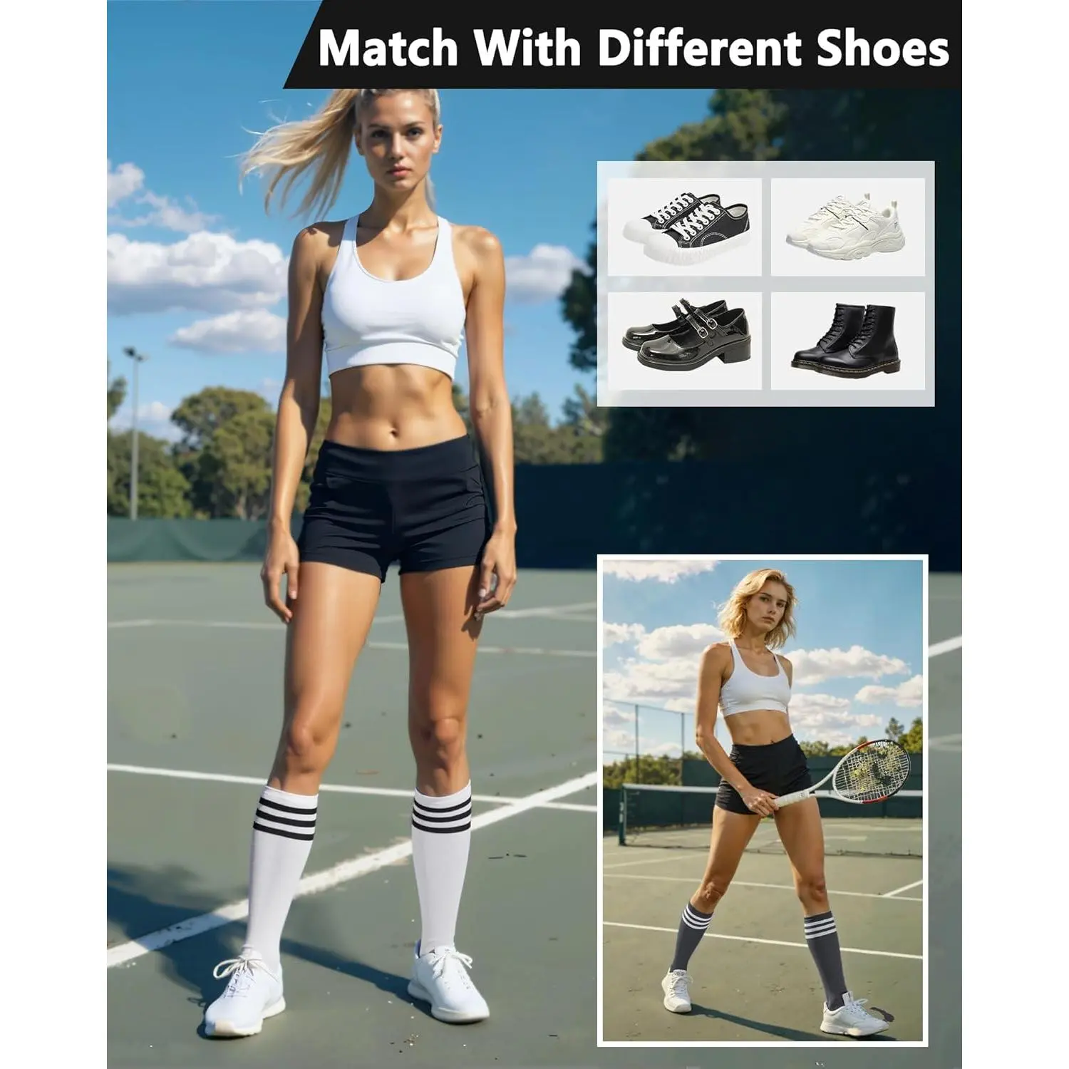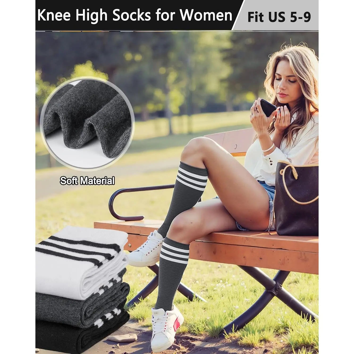 Women's Knee High Socks – Cotton Striped Tube Boot Socks, Long Breathable Stockings for Casual Outdoor Sport, Soft Crew Socks for Boots Tennis Soccer Cycling – 3-6 Pairs