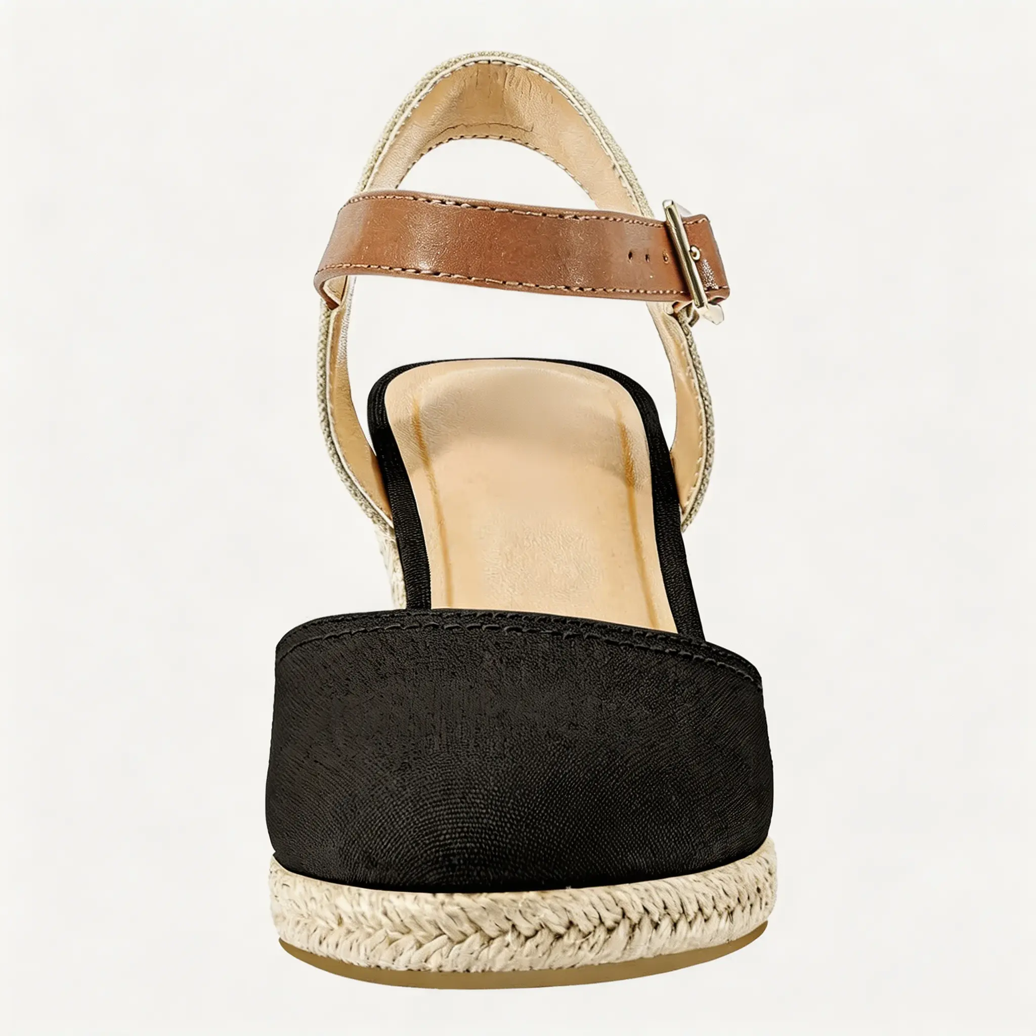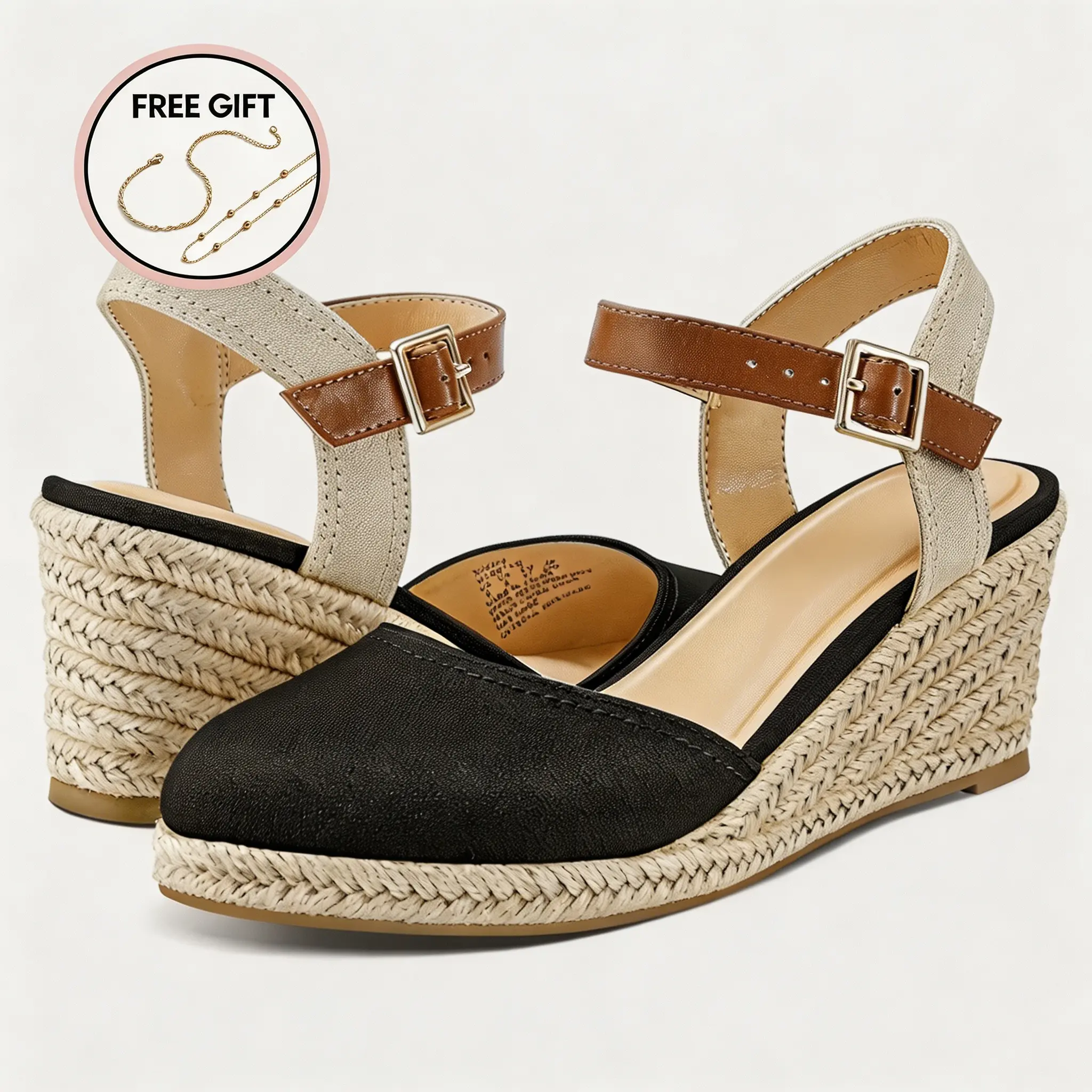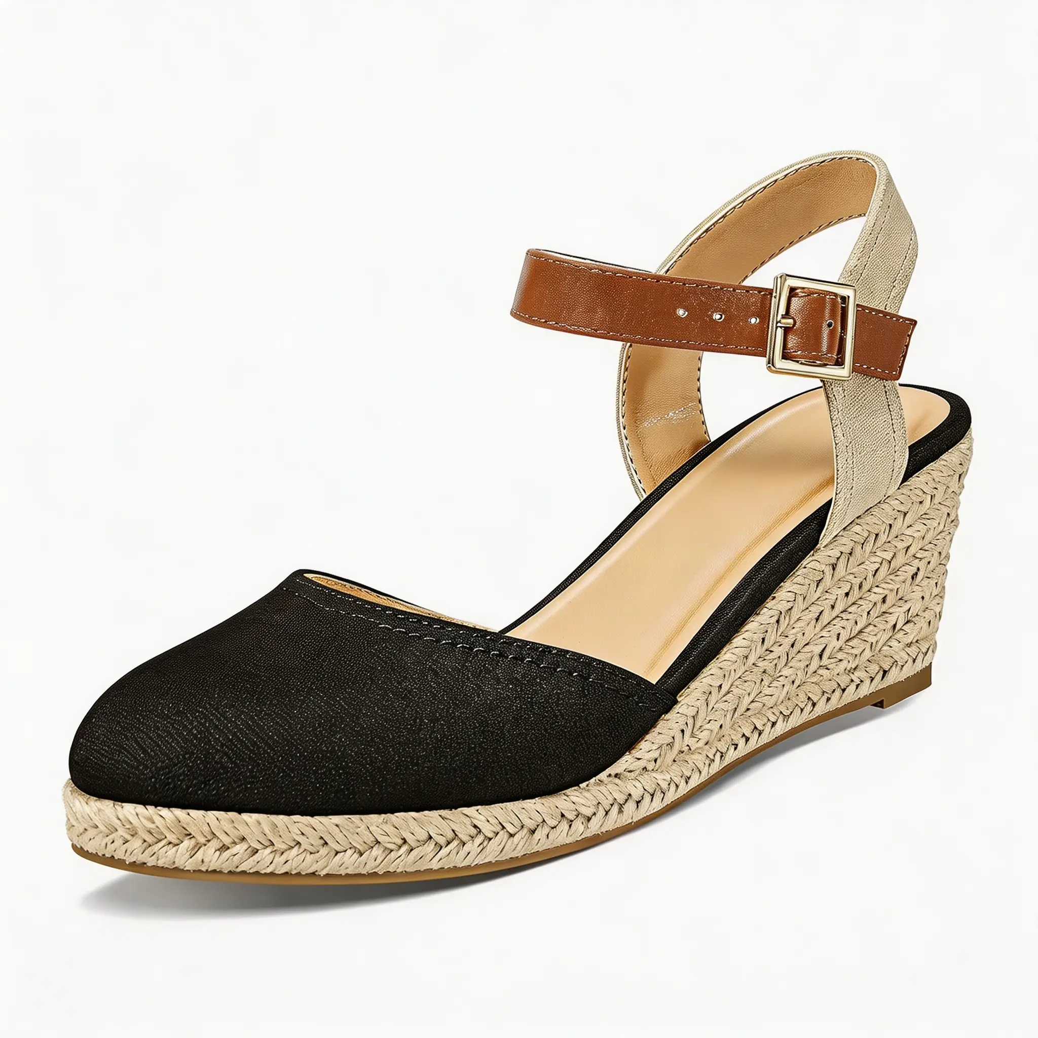 Women's Espadrille Low Wedge Heel Sandals with Buckle Ankle Strap Close Toe Casual Dressy Summer Platform Shoes