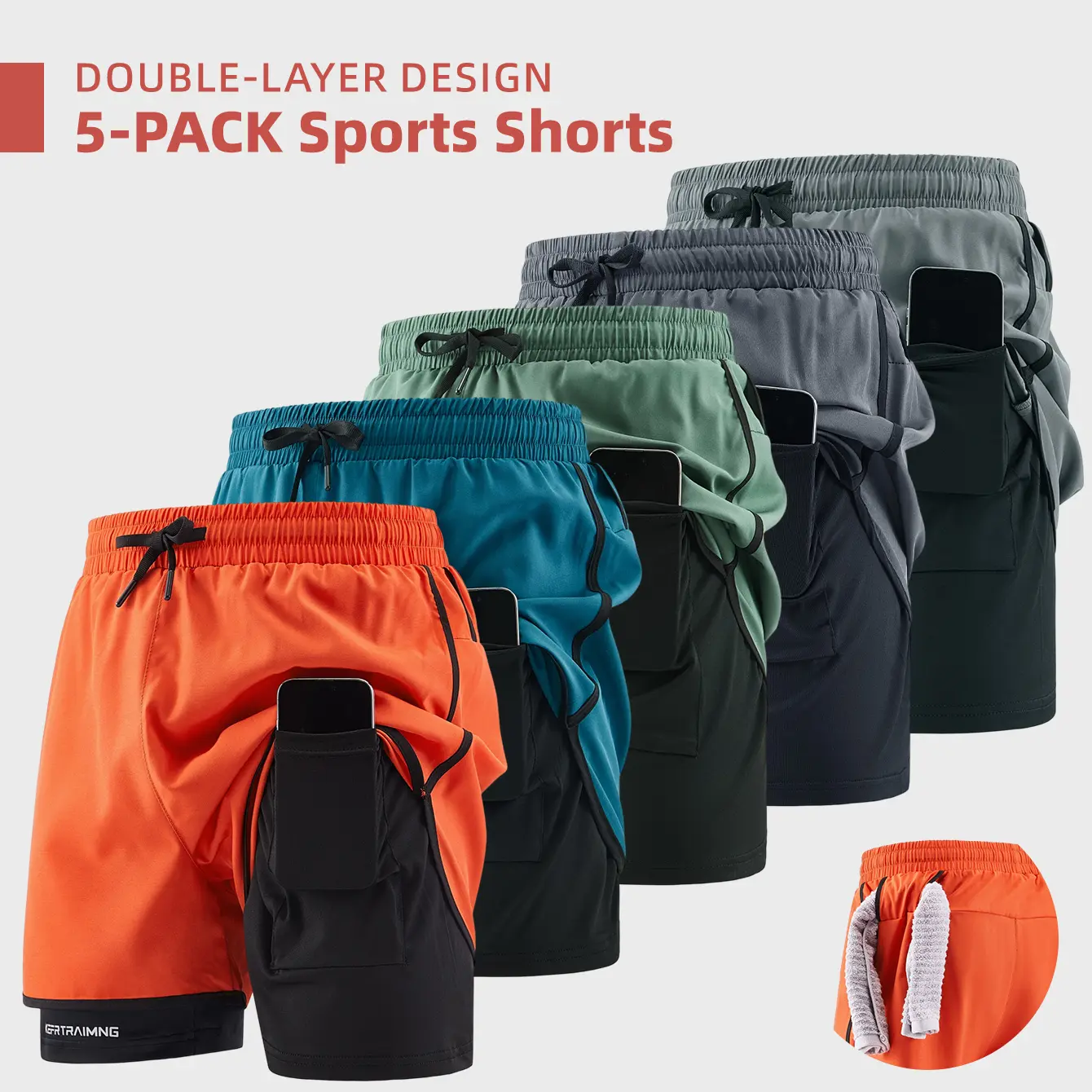 Exclusive side and back storage pockets can easily hold your phone and other personal items, so you don't need to carry an extra bag during exercise, completely freeing your hands. The back is also thoughtfully designed with a towel loop, allowing you to grab a towel to wipe sweat anytime during fitness or running. It maximizes practicality and fully meets your storage needs during workouts.