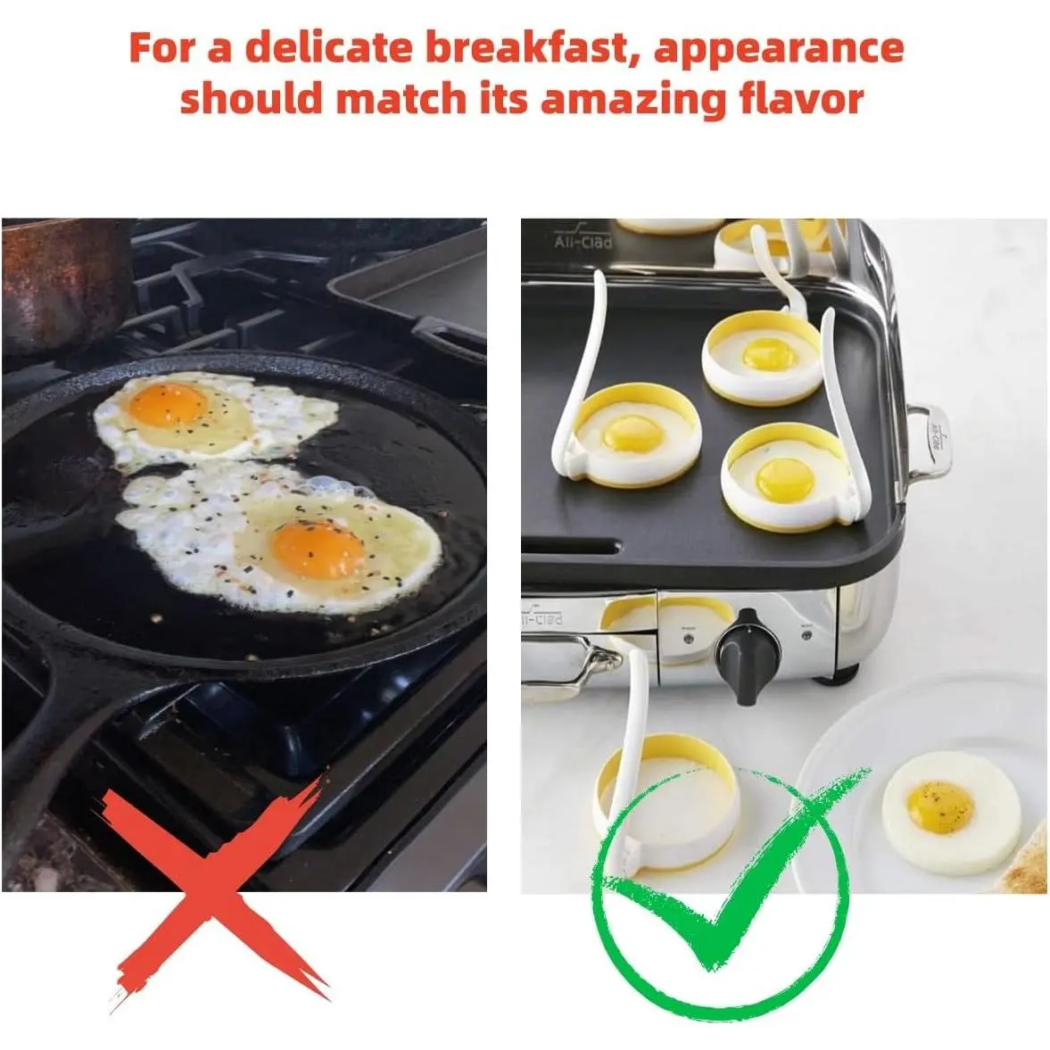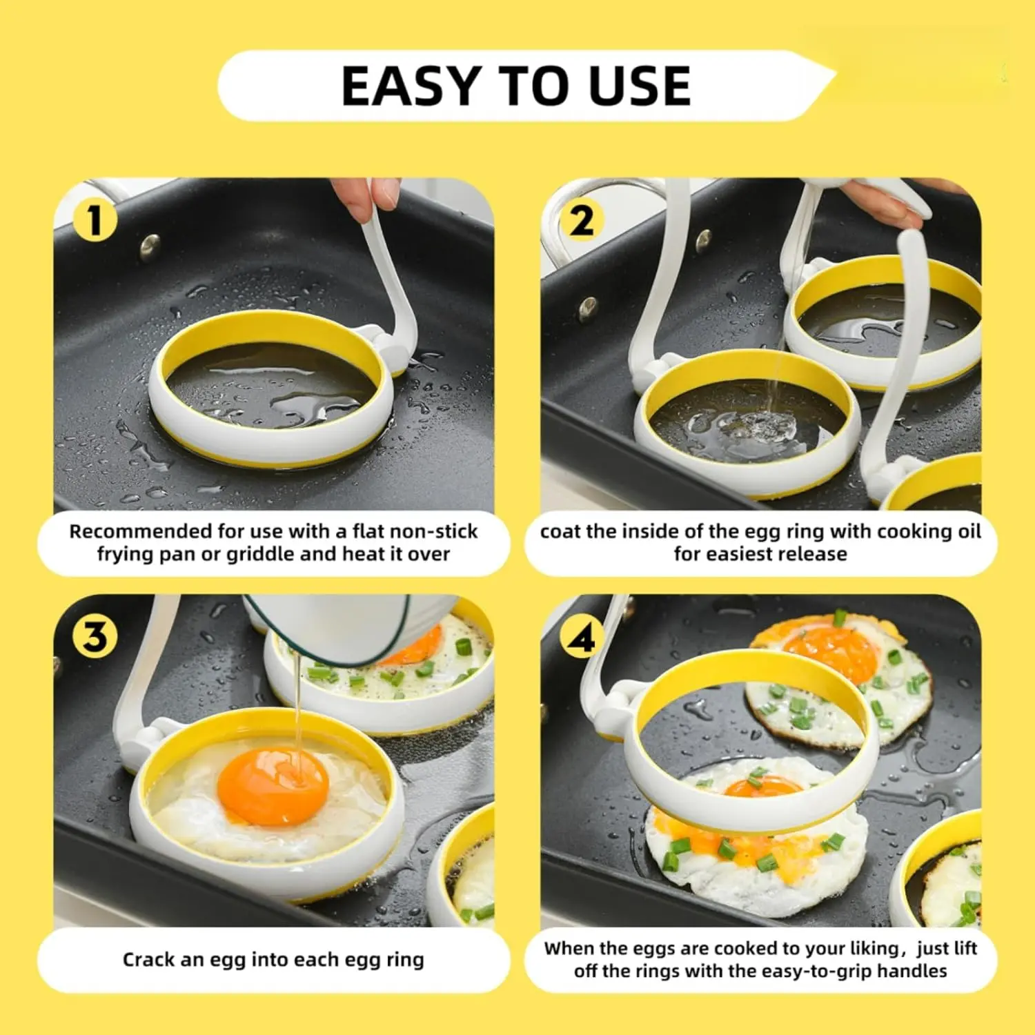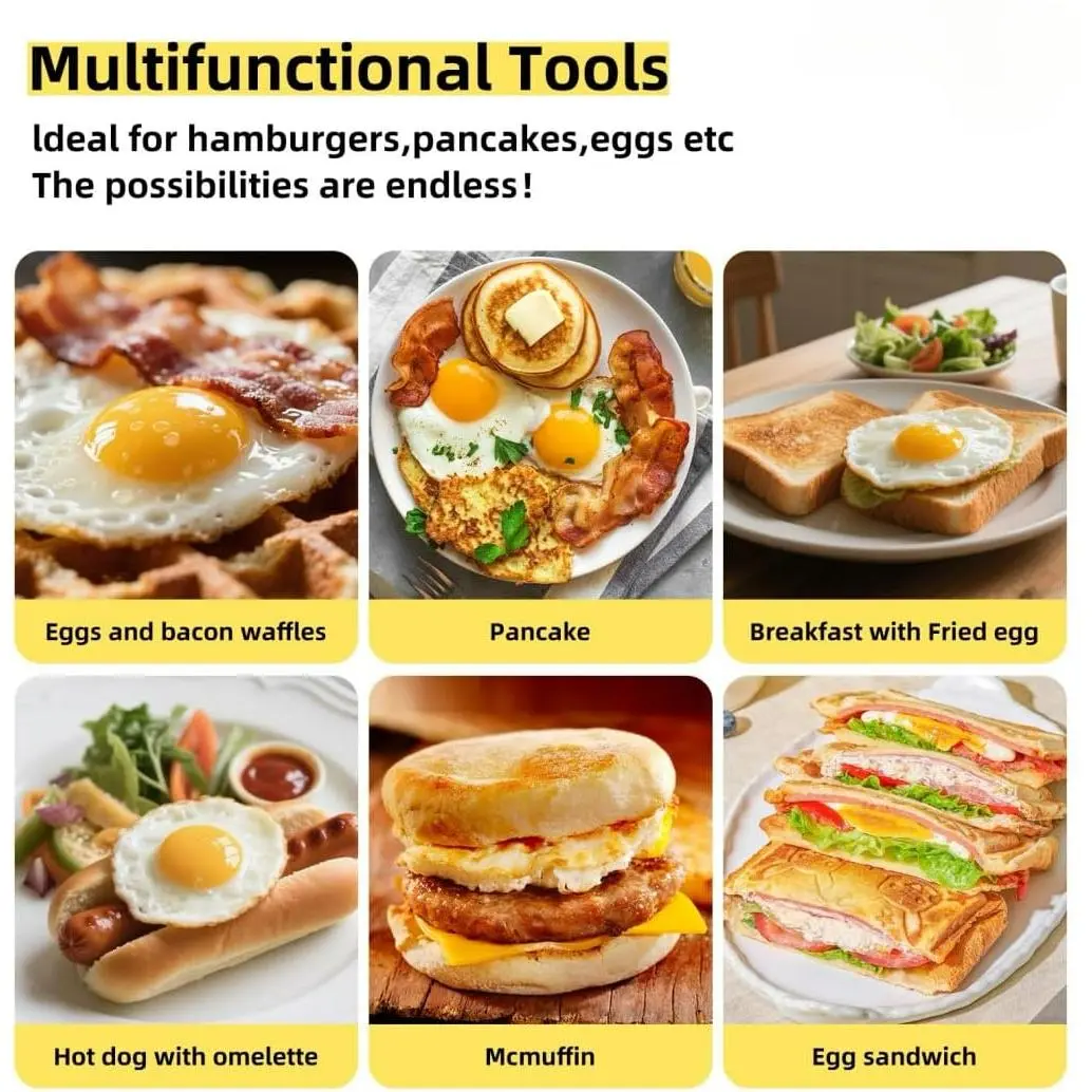 Perfect for frying eggs, pancakes, hamburgers, sausage patties, and so much more!Elevate your breakfast, brunch, or weeknight meals with versatile use-ideal for crafting perfectly shaped, restaurant-worthy treats right in your kitchen
