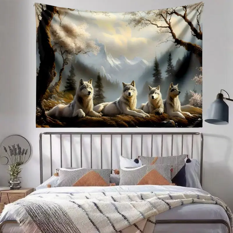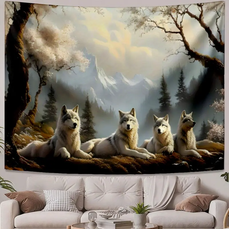 Casual Tapestries Four white wolves in nature Nature inspired design Multi-scene use