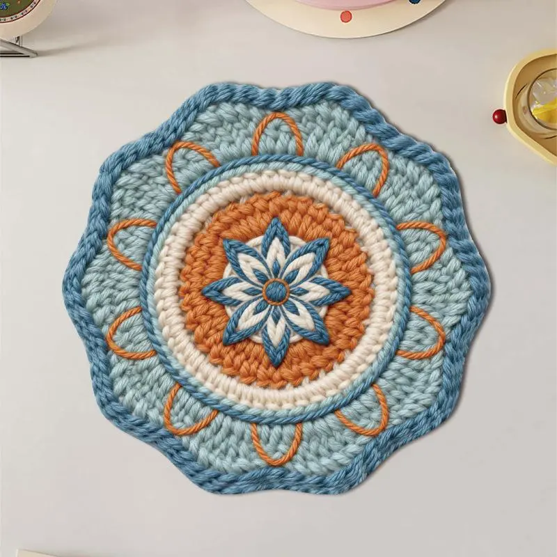 2D Flat Printed Mandala Floral Design Placemat, Heat-Resistant, Non-Slip & Durable, Lightweight Luxury Table Decor, Home Furnishing Accessory