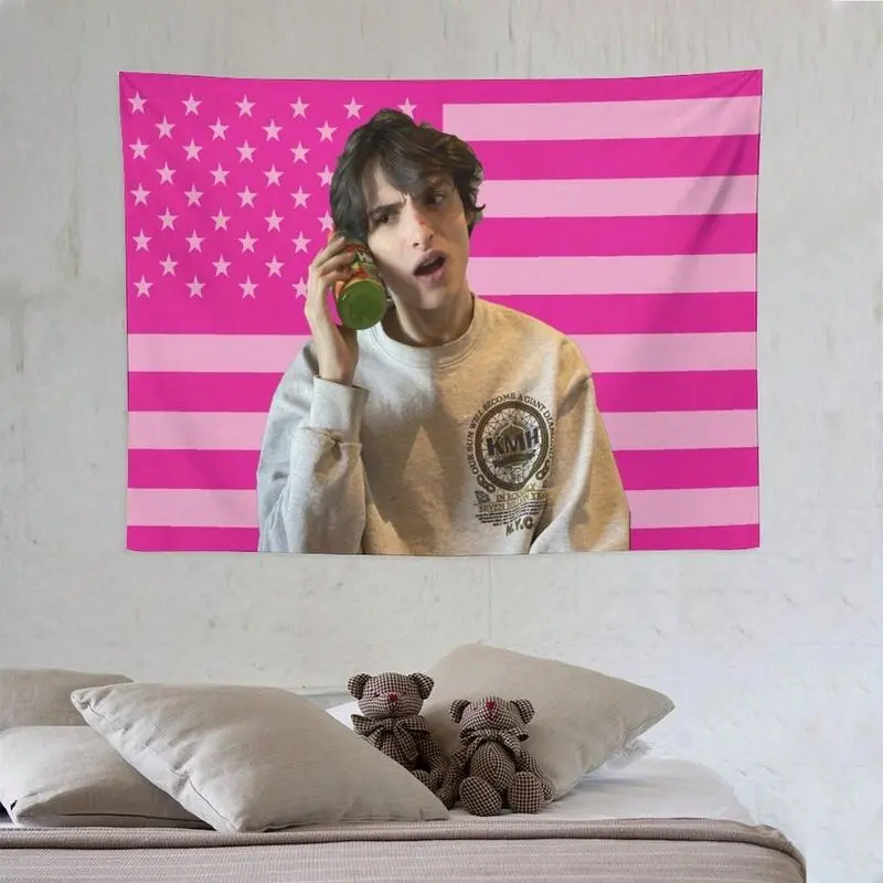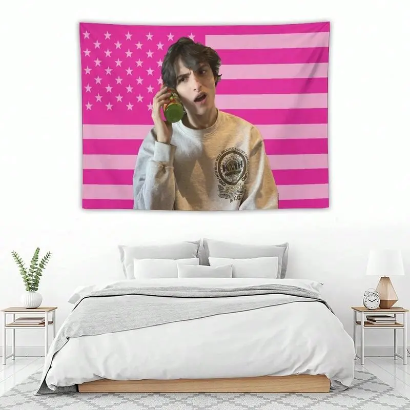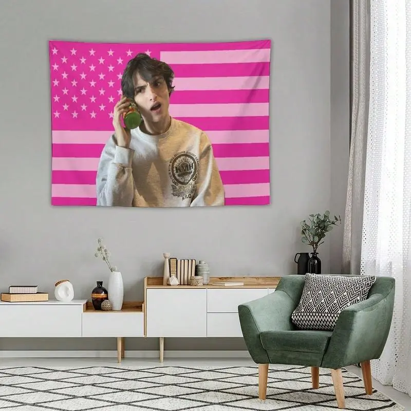 Celebrity Theme: Showcase your admiration for Fen Wolfhard with this tapestry featuring a vibrant American flag design.
