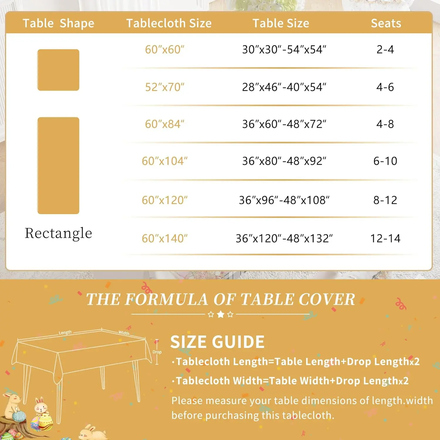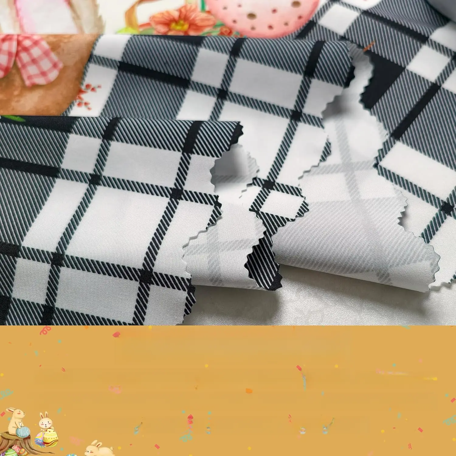 Easter Tablecloth 60x84 Inch Rectangular – Spring Plaid Bunny & Egg Pattern, Washable Polyester Fabric Table Cover for Easter Dinner, Party, Picnic, Brunch Decor – Stain Resistant & Reusable