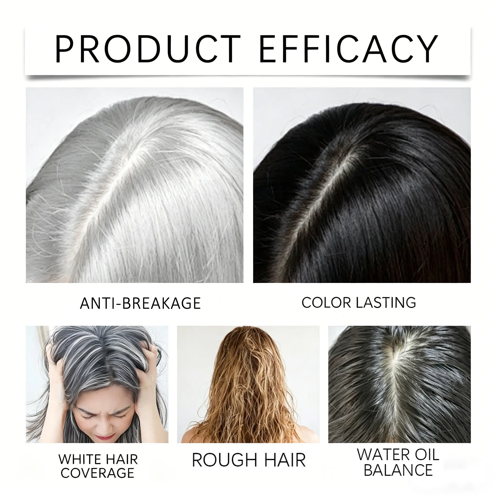 3 in 1 Hair Dye Shampoo Natural Herbal Ingredients Contains Ginseng Extract Black Hairdye Can Cover Gray Hairs Long Lasting Semi-Permanent Natural Color
