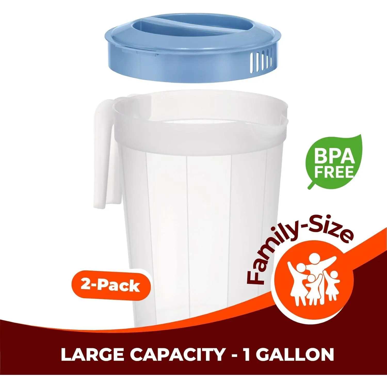 2 Pack 1 Gallon Plastic Pitchers with Lids BPA Free Large Beverage Containers for Iced Tea Juice Water Dishwasher Safe Leak Proof Storage Jugs for Fridge Freezer