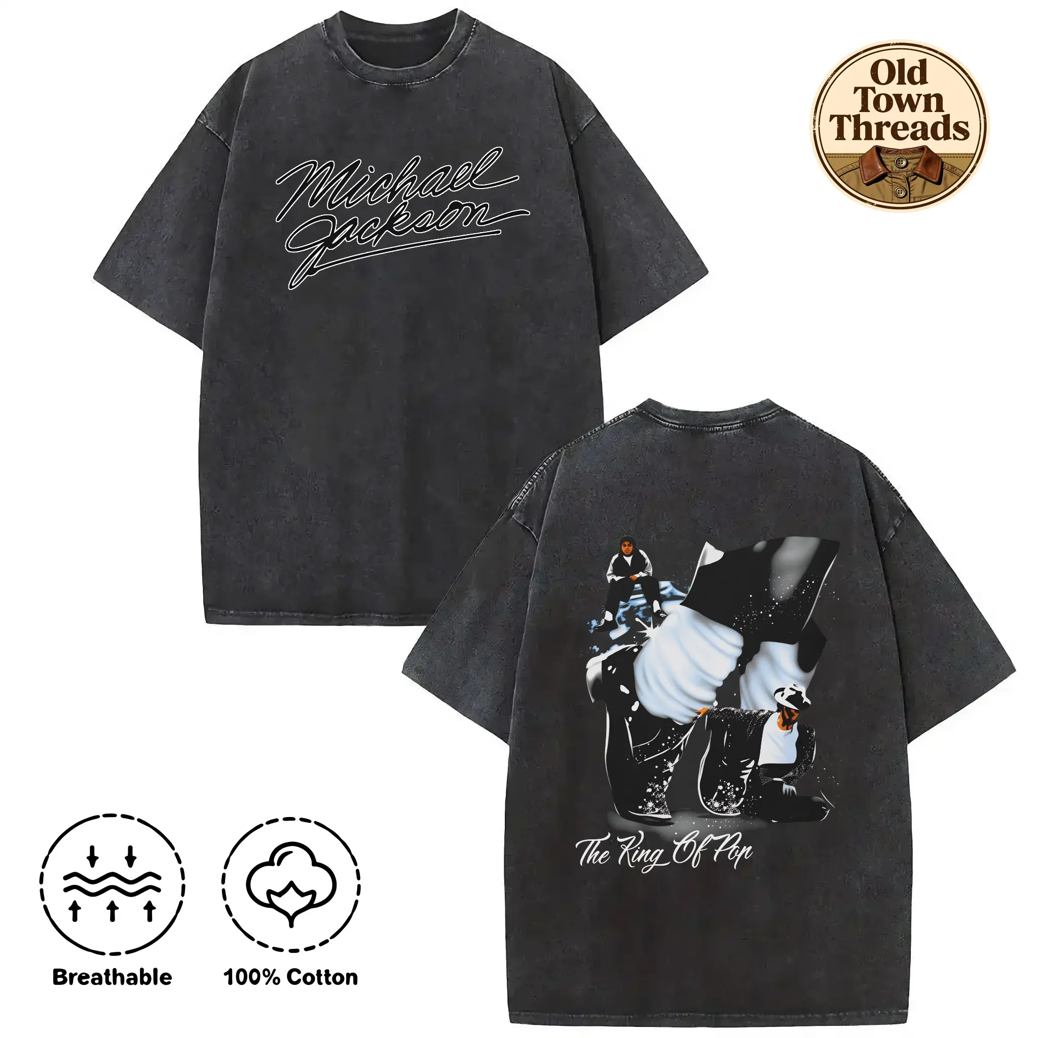 Washed T-shirt, 100% cotton, double-sided printed design Michael, King of Pop Legend - MJ lovers, Retro Music Legend T-MJMichael Jackson King Of Pop Moonwalk T-Shirt Michael Jackson T-Shirt