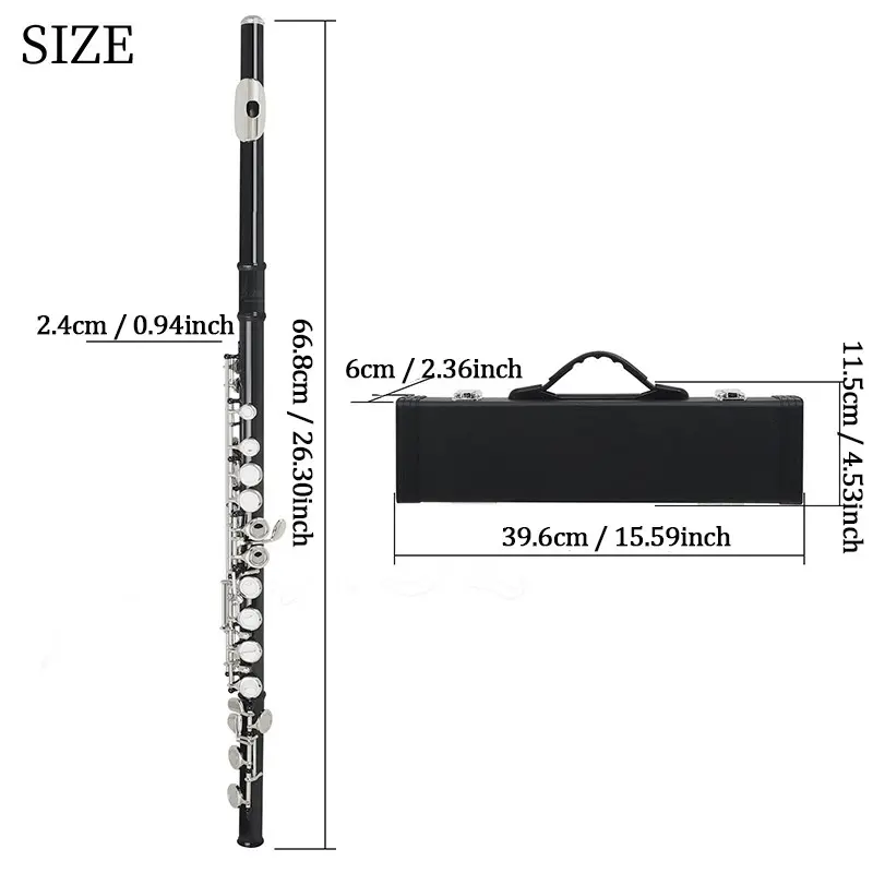 16 Hole Flute, C Key Flute with Accessories, Musical Instrument for Beginners, Woodwind Instrument for Home School Office
