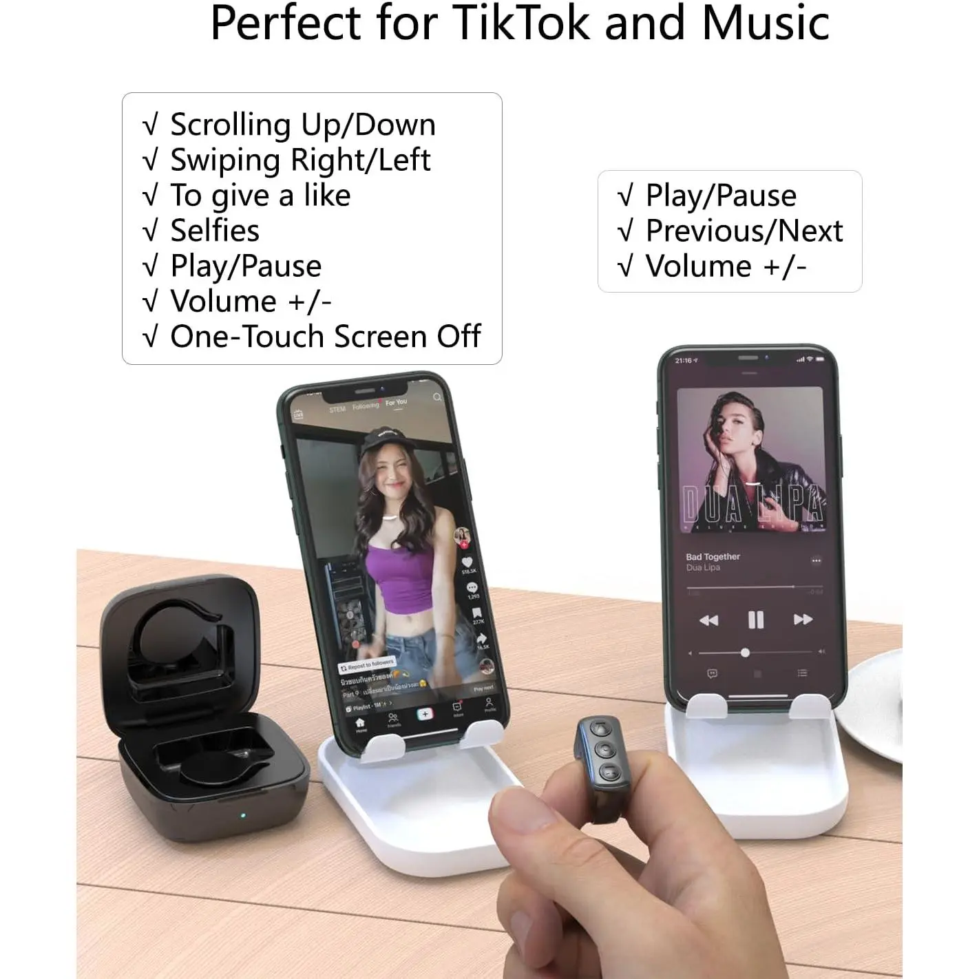 Scrolling Ring, Bluetooth Page Turner, Camera Remote, Extended Battery Life, Works with iOS & Android, 30ft Wireless Range, Black