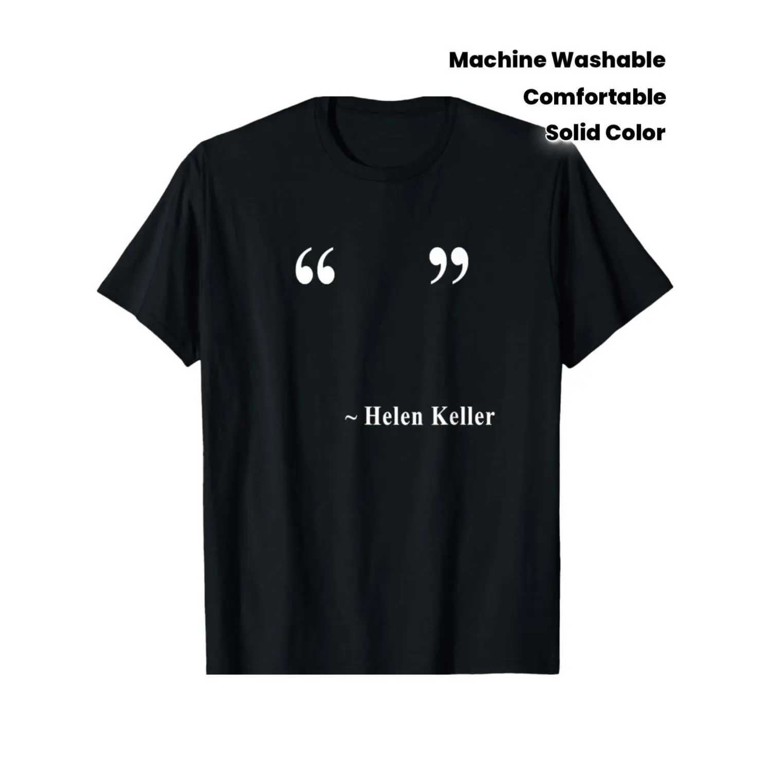 Helen Keller Quote T-shirt | Black Pure Crew Neck with White Lettering, Comfortable and Stylish, Suitable for Casual Wear, Machine Washable, Ideal for Men and Male Teenagers, Perfect for Spring/Fall Seasons, Solid Color with Slight Stretch Fabric