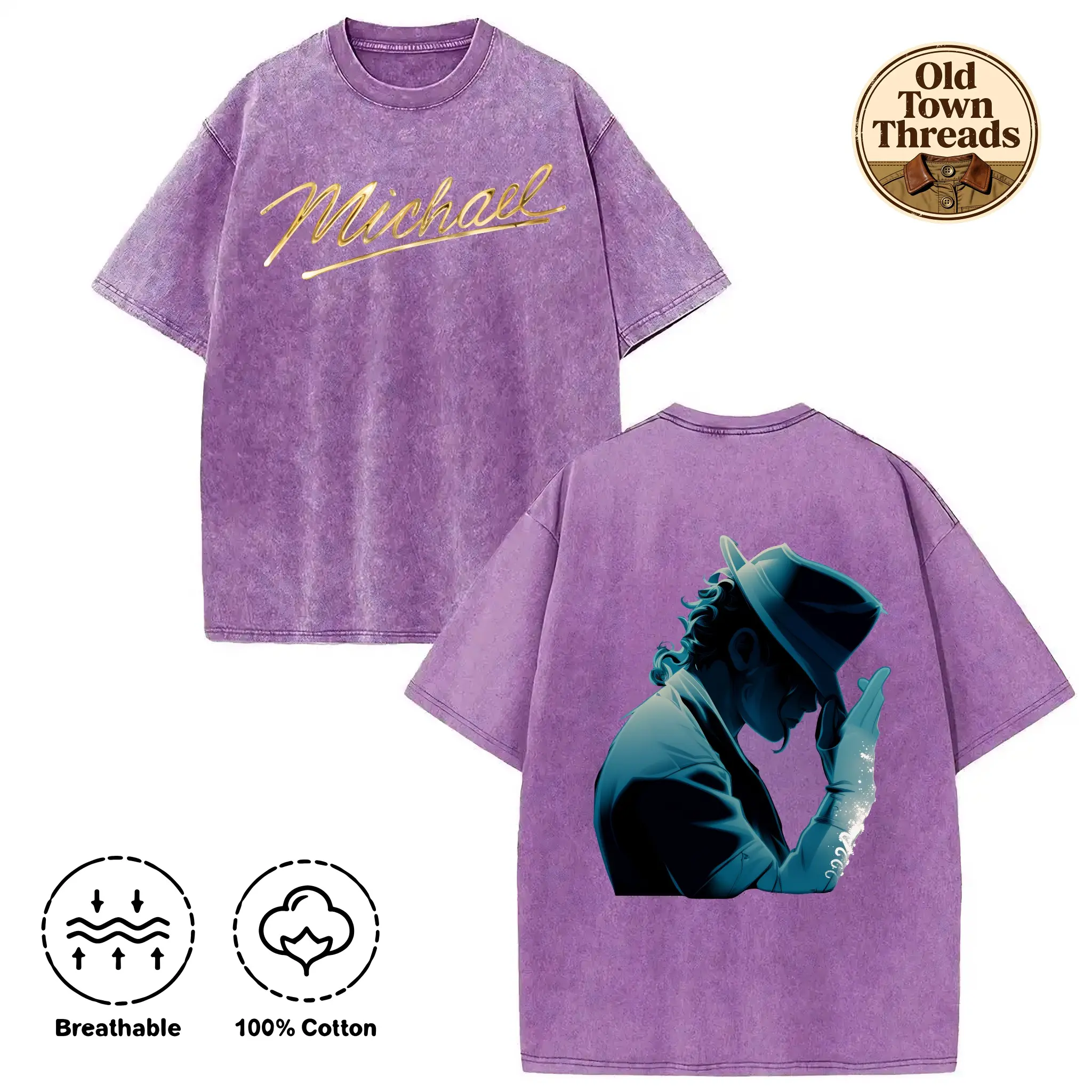 Washed T-shirt, 100% cotton, double-sided printed design Michael king of Pop Fan Art T-Shirt Michael Jackson T-Shirt