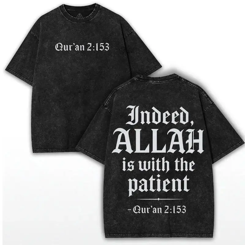 valentine shirts Qur’an 2:153 Shirt – Washed Oversized Faith Tee with Bold Patience Verse Graphic | Christian Muslim Streetwear