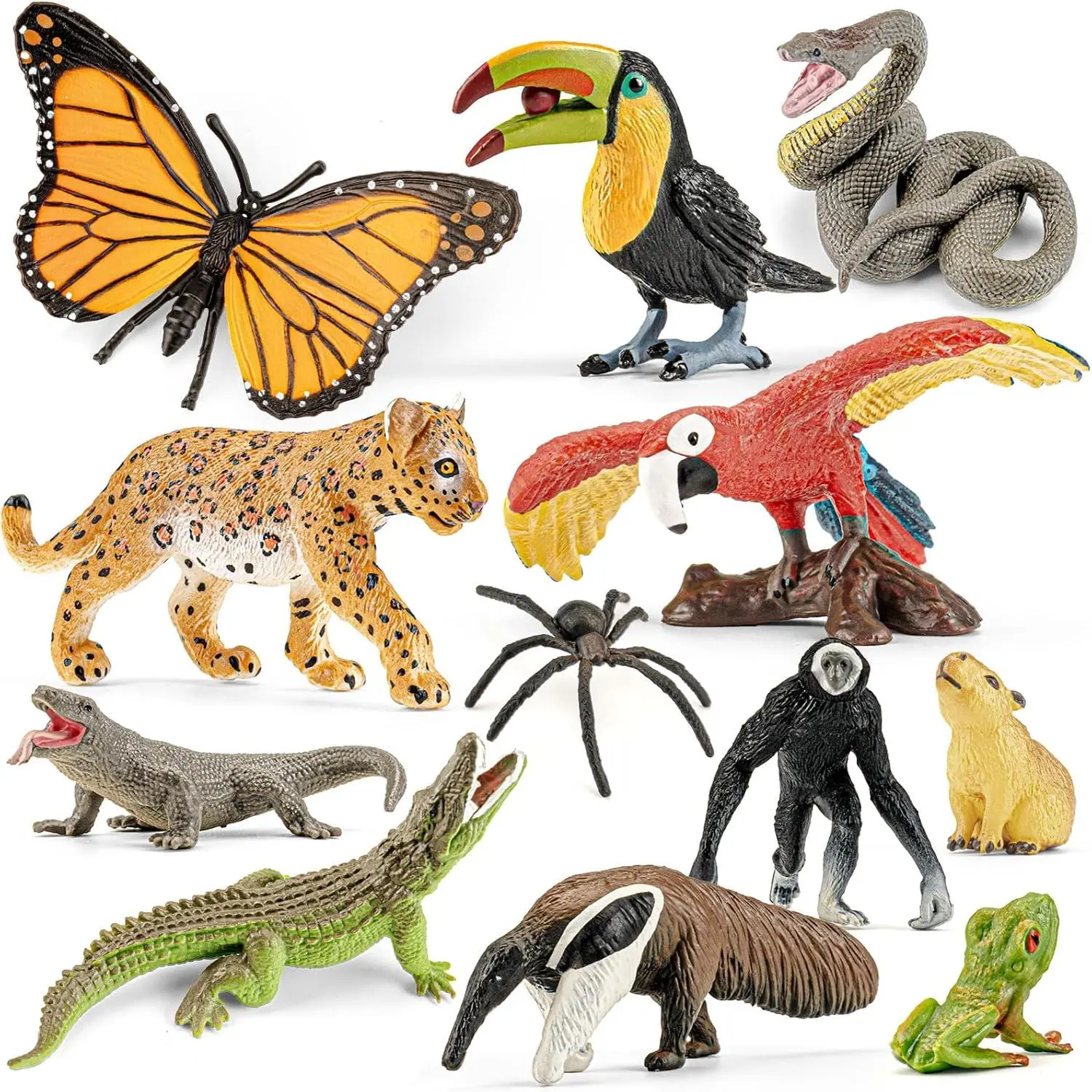 12PCS Realistic Jungle Animal Figures Toys, Rainforest Diorama Decor Party Favor, Wild Animals Learning Toys for Toddlers Boys Girls, Valentine's Day Gift for Kids
