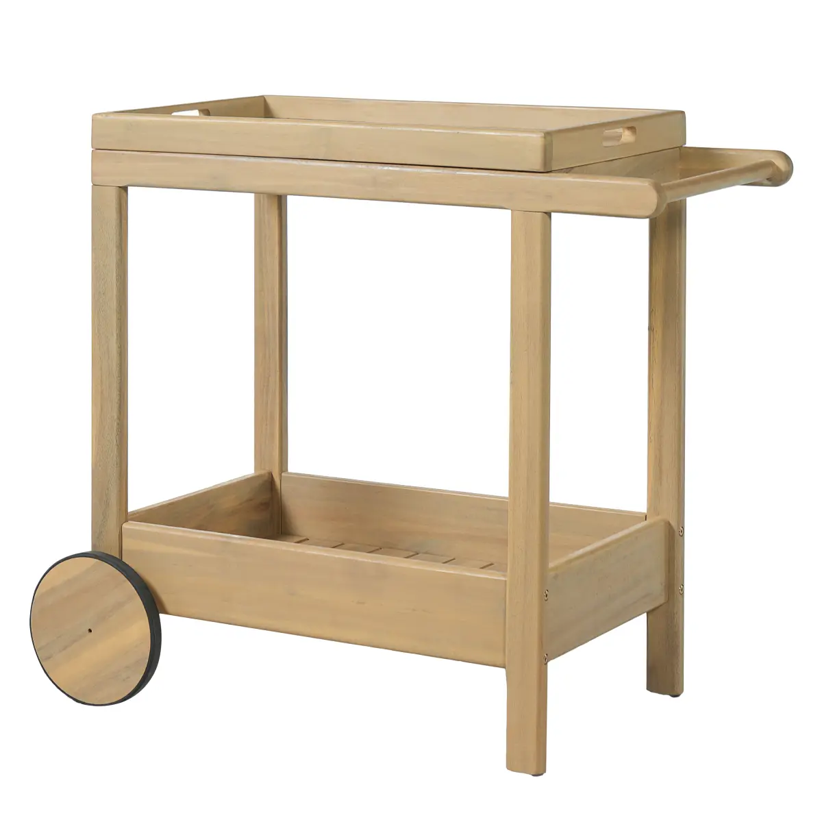 Item Code: N775P403812BProduct Type : Single Box ProductProduct Name: Saratoga Outdood Rolling Bar CartPlace of Origin: Viet NamMain Color: NaturalMain Material: Acacia Wood