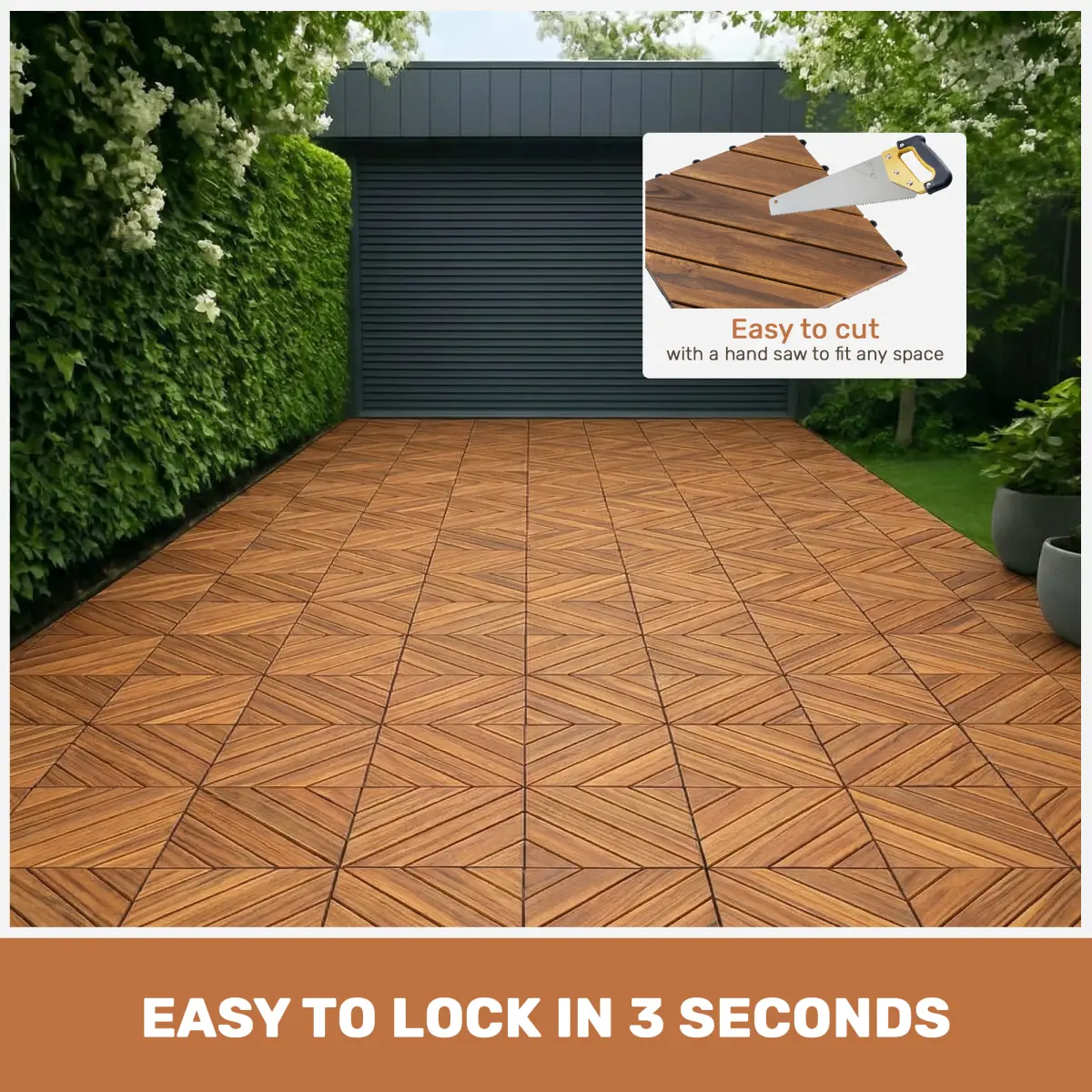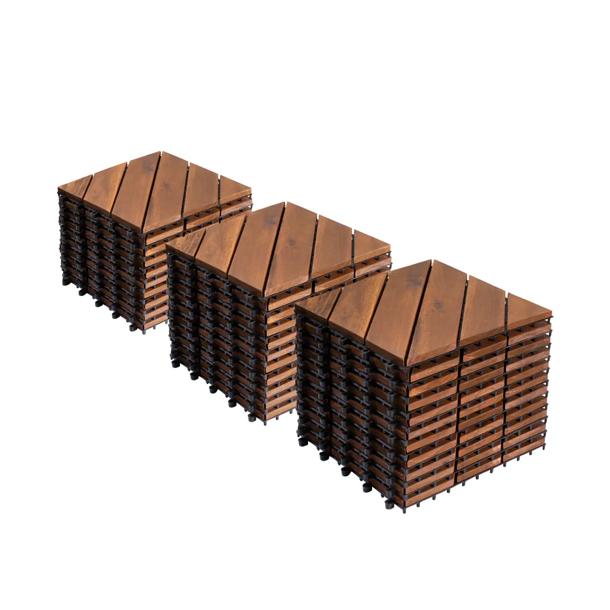 ·Natural Acacia Wood: Our click tiles are made of high-quality acacia wood with a beautiful natural grain.This robust hardwood is particularly durable and ideal for use as patio decking, outdoor tiles for patio, balcony flooring, or garden flooring in outdoor platform deck for yard spaces.