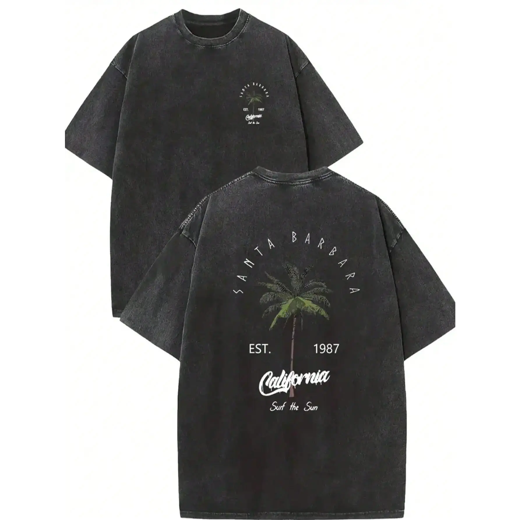 valentine shirts Men's Retro California Style Cotton T-Shirt-"Est.1989" Coconut Tree Design, Short Sleeves, Round Neck, Casual Summer Clothes, Machine Washable, Summer Casual Clothes |TiedyeT T-Shirt Back Design, Retro T-Shirt.