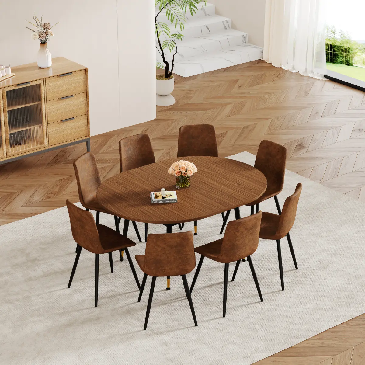 ·The classic walnut color complements a wide range of interior styles, from minimalist and modern to farmhouse and contemporary, seamlessly integrating into your dining room, kitchen, or living area.