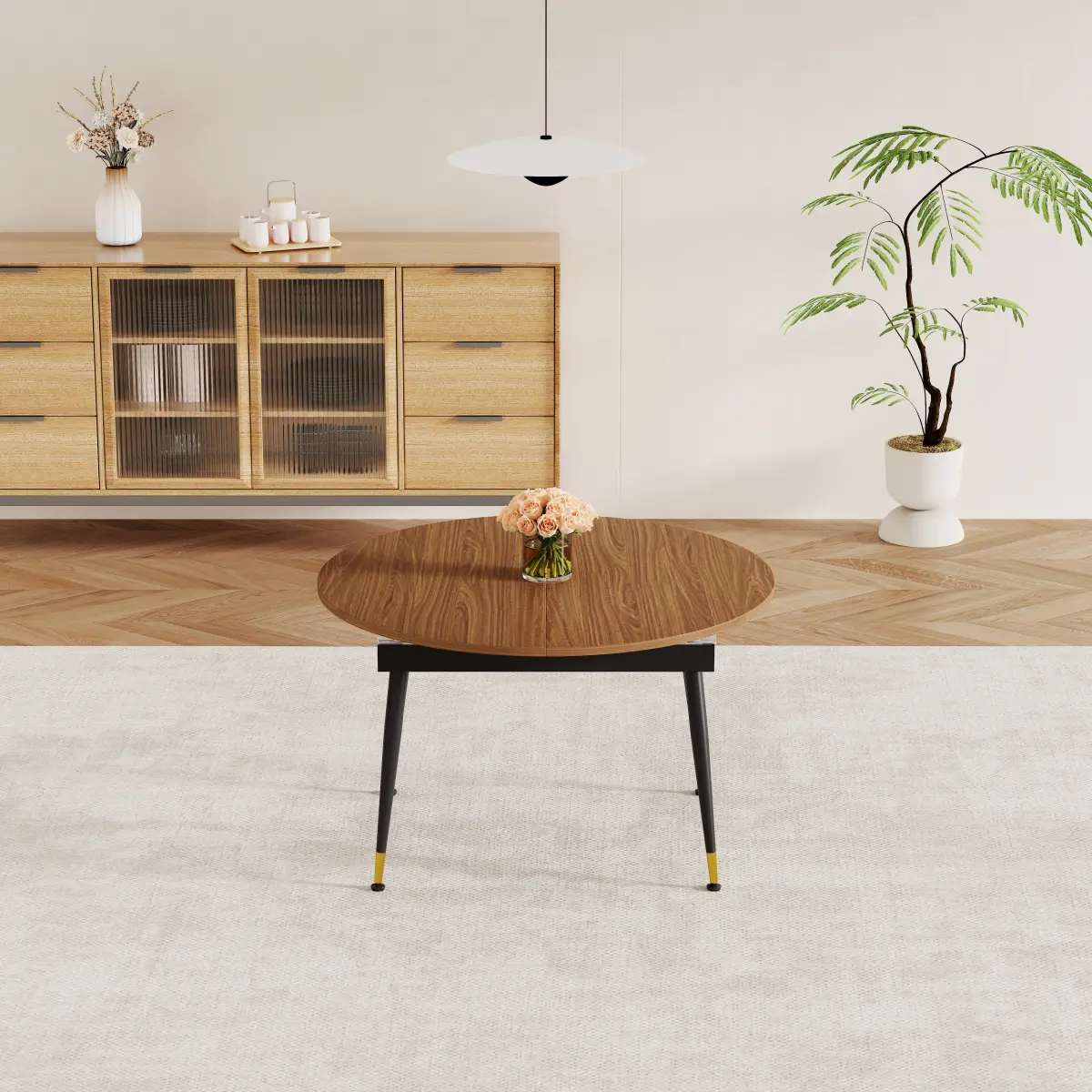 ·Designed as an extendable table, it easily adapts to your needs-compact for daily meals and expanded for family gatherings, dinner parties, or hosting guests, making it ideal for small to medium-sized dining rooms and kitchens.